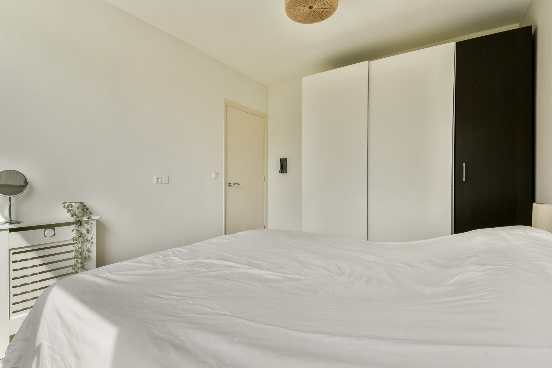 The main bedroom is located next to the living room and offers ample space for a wardrobe.