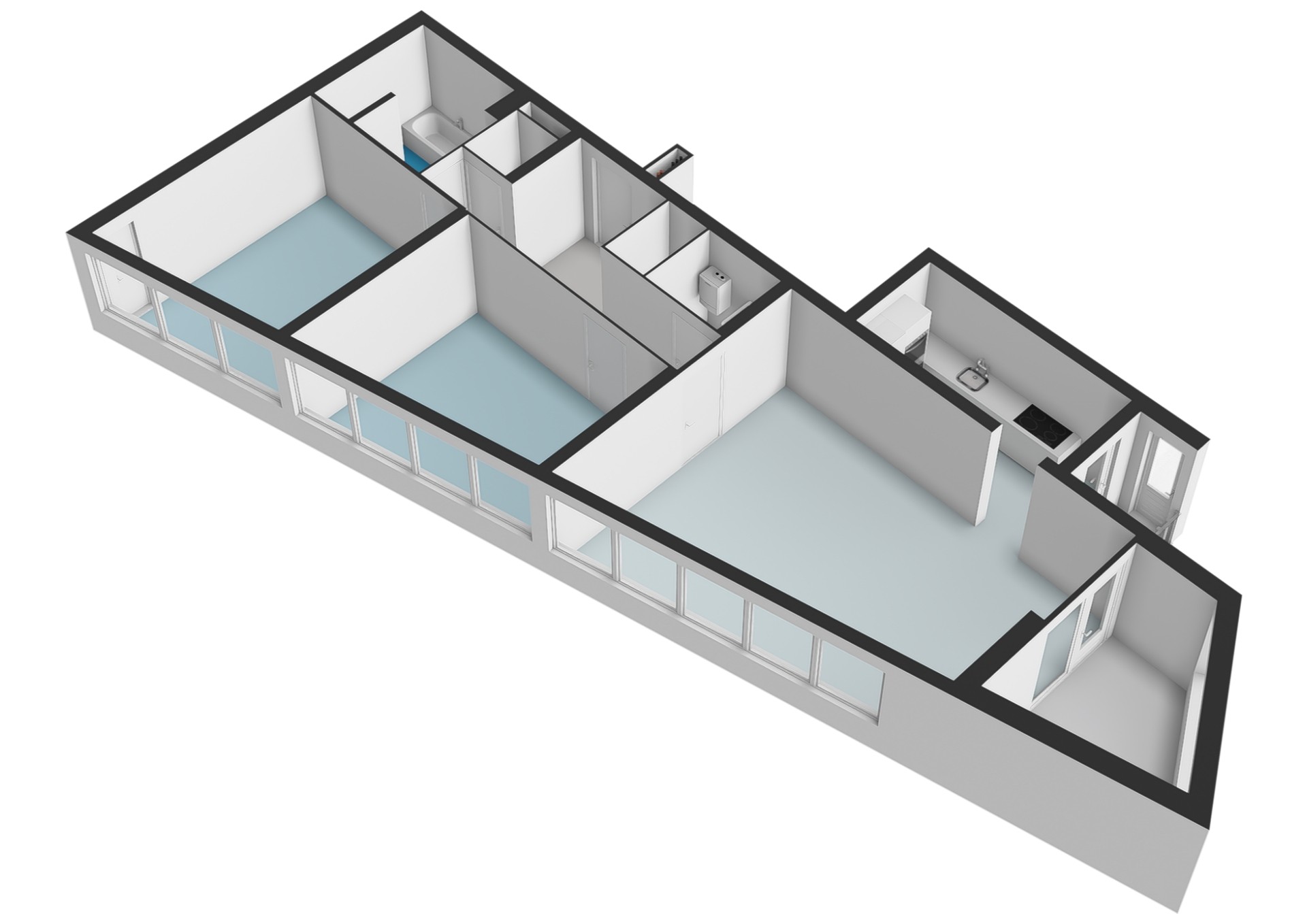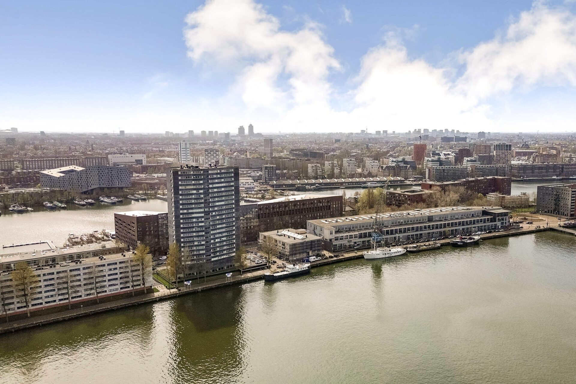 Dit royale driekamerappartement van ruim 100 m² bevindt zich op de veertiende verdieping van het iconische Skydome-gebouw op het KNSM-eiland. Het complex, ontworpen door architect Wiel Arets, kenmerkt zich door een strak industrieel ontwerp waarin kwaliteit en oog voor detail centraal staan. Terwijl de buitenzijde modern en zakelijk oogt, is er binnen veel aandacht besteed aan sfeer en comfort, met fraai ingerichte gemeenschappelijke ruimtes.