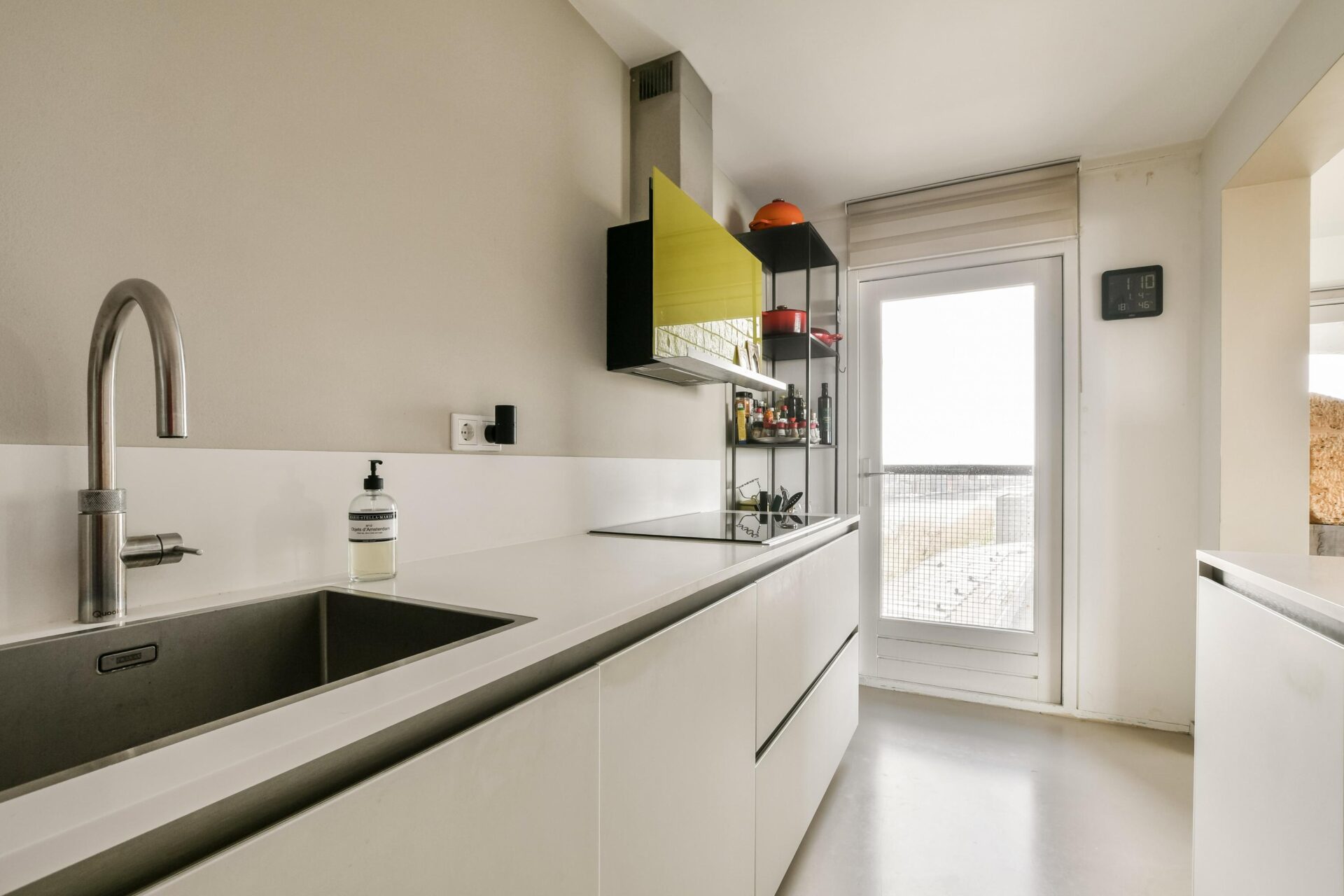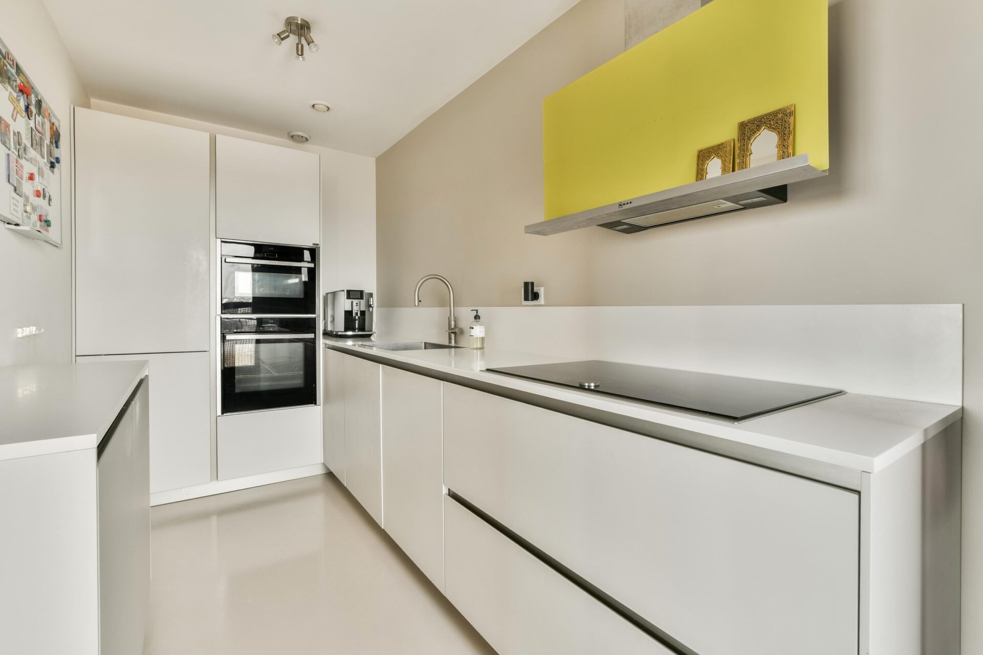 The generous living room is situated on the left and immediately stands out due to the abundance of natural light. Large windows offer breathtaking views over the IJ. Adjacent is the modern kitchen, fully equipped with all conveniences: a combi oven, separate (steam) oven, Quooker, dishwasher, induction cooktop, extractor system, and a fridge-freezer combination.