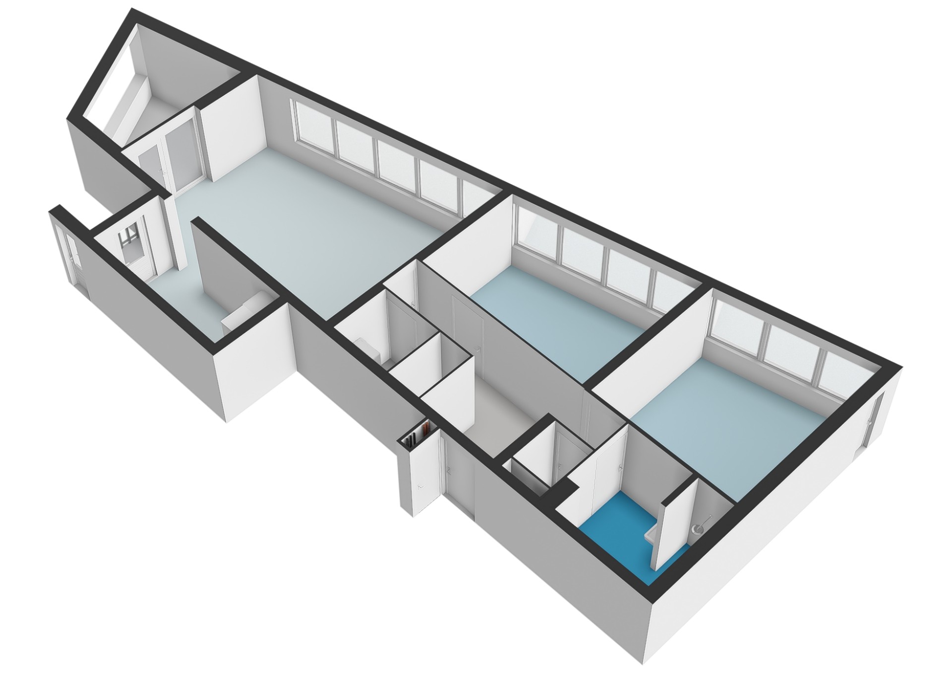 Bij binnenkomst betreed je een ruime hal met garderobe. De meterkast bevindt zich direct naast de voordeur, buiten de woning. Vanuit de hal zijn alle vertrekken toegankelijk.