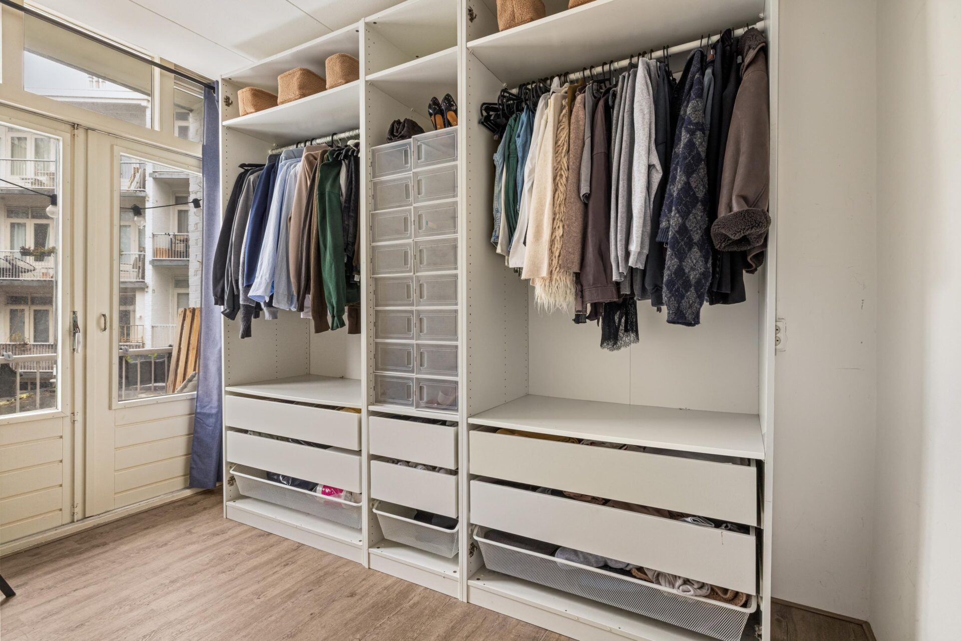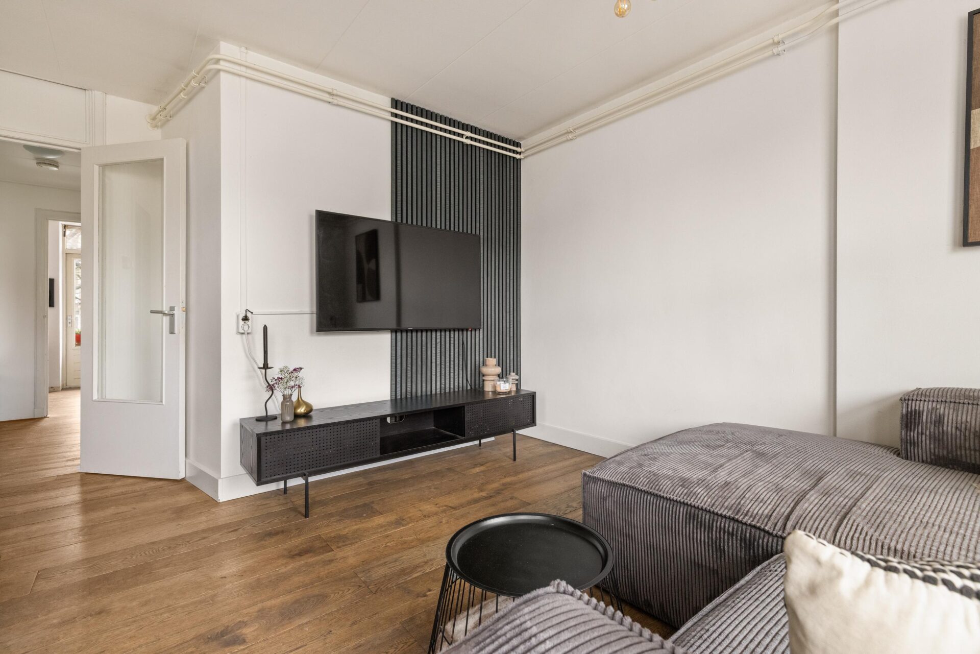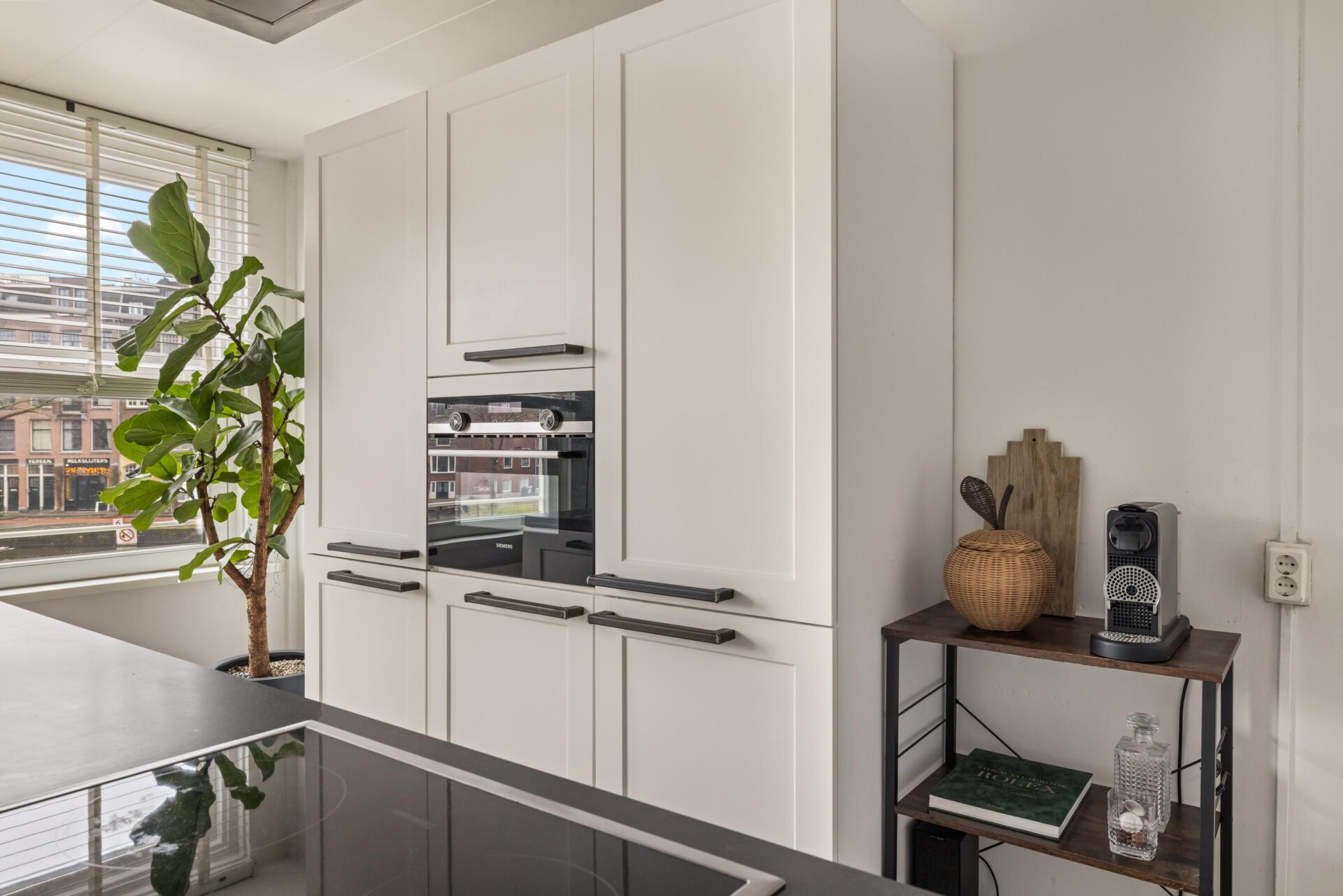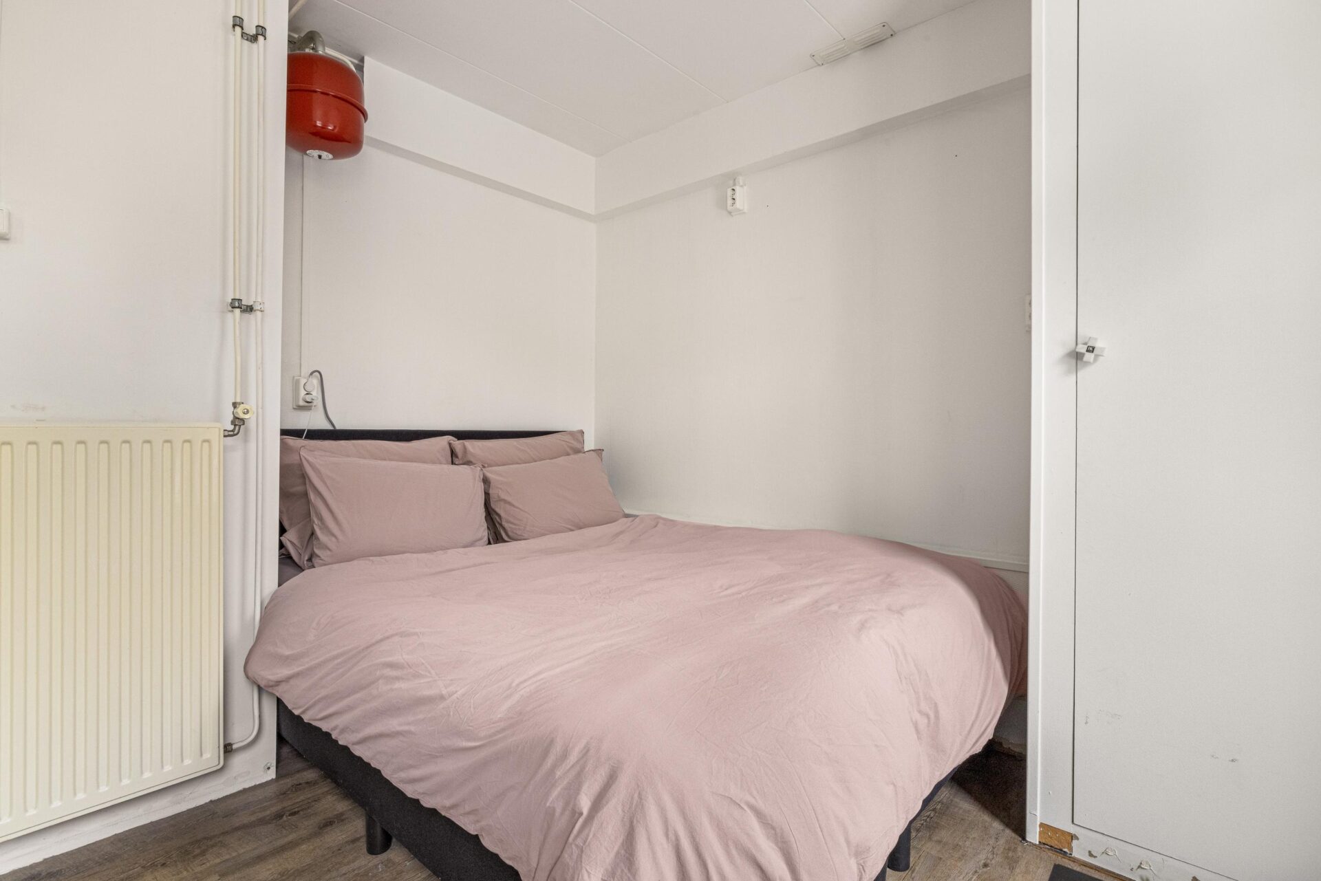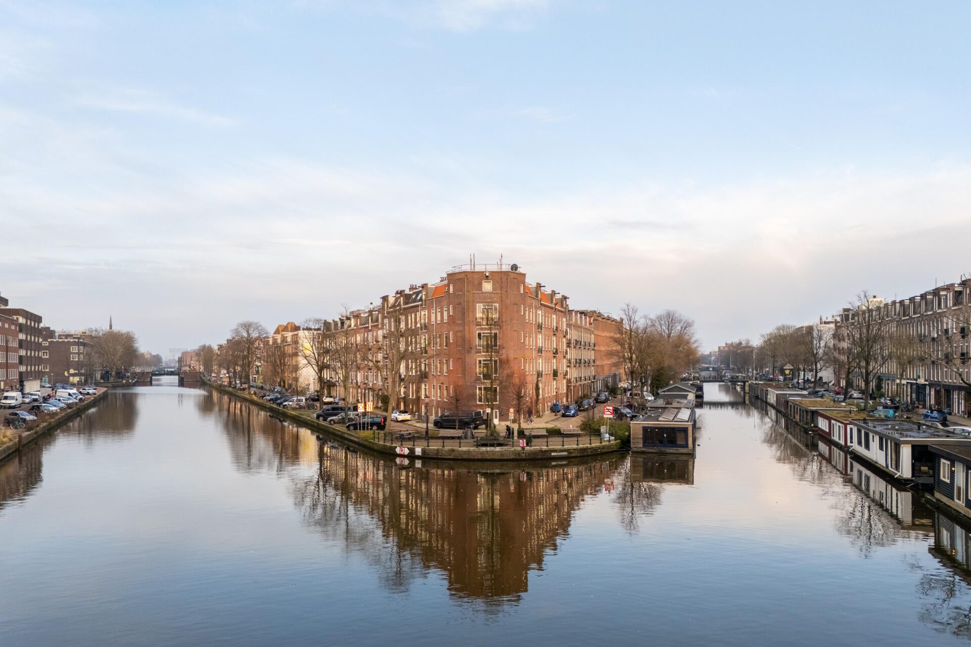Via the neat communal stairwell you reach the apartment on the first floor. You enter into a pleasant hallway that provides access to all rooms. The front side is undoubtedly the eye-catcher of this apartment: a stunning view that never gets boring. From here you have front-row seats during King’s Day, Pride, and every summer when Amsterdam’s boats pass by in cheerful procession. Thanks to the large windows, this is a bright and inviting living space.