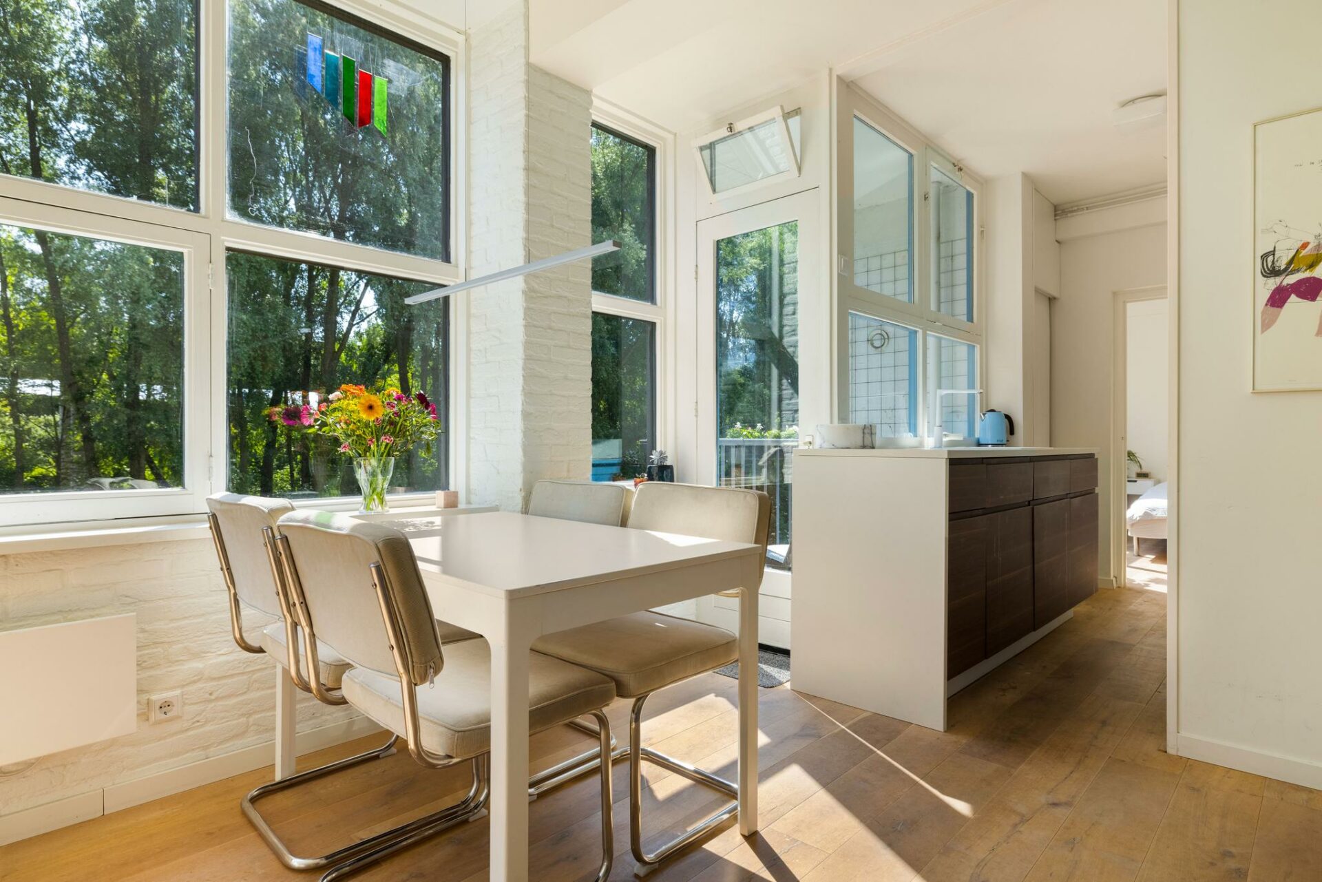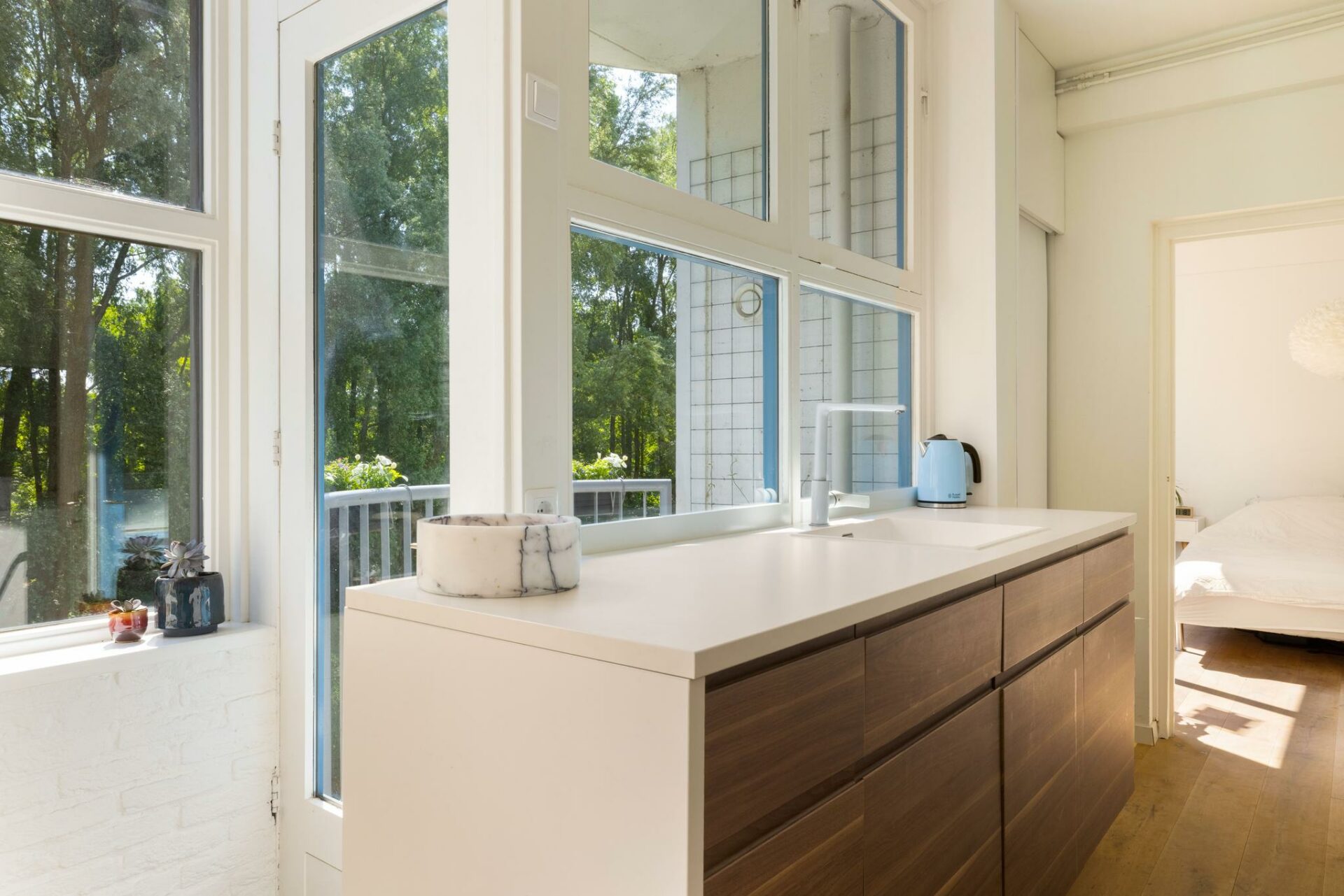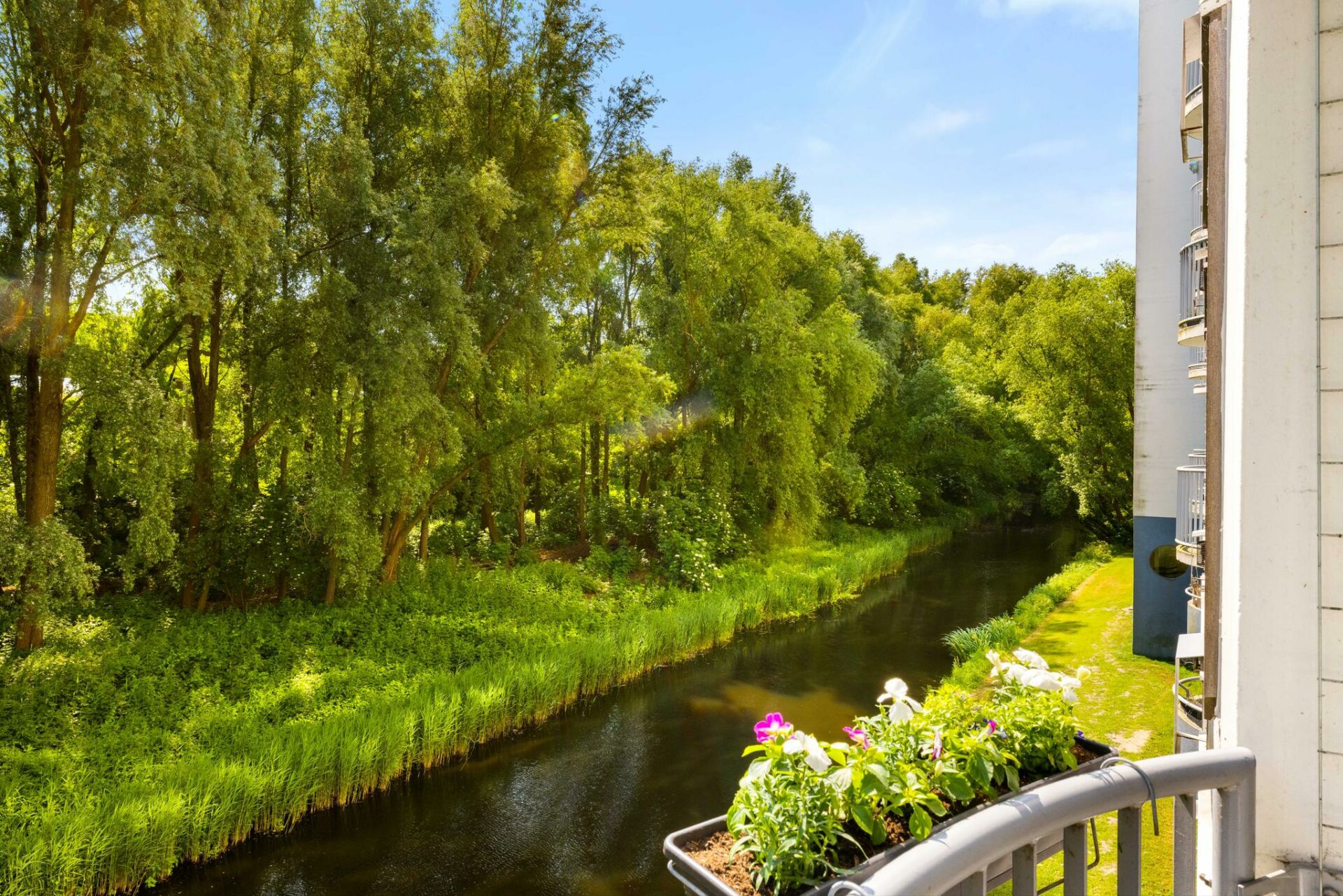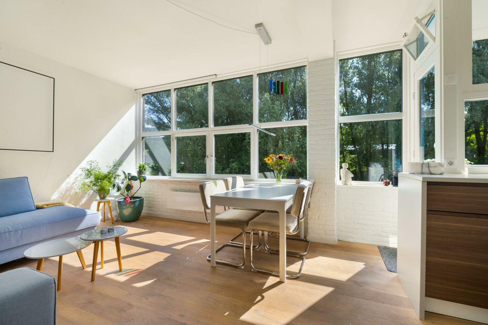 Je woont hier omringd door groen, waardoor het voelt alsof je je midden in de vrije natuur begeeft. En dat terwijl je om de hoek van de drukte en gezelligheid van Bos & Lommer woont en op een steenworp afstand van station Sloterdijk.