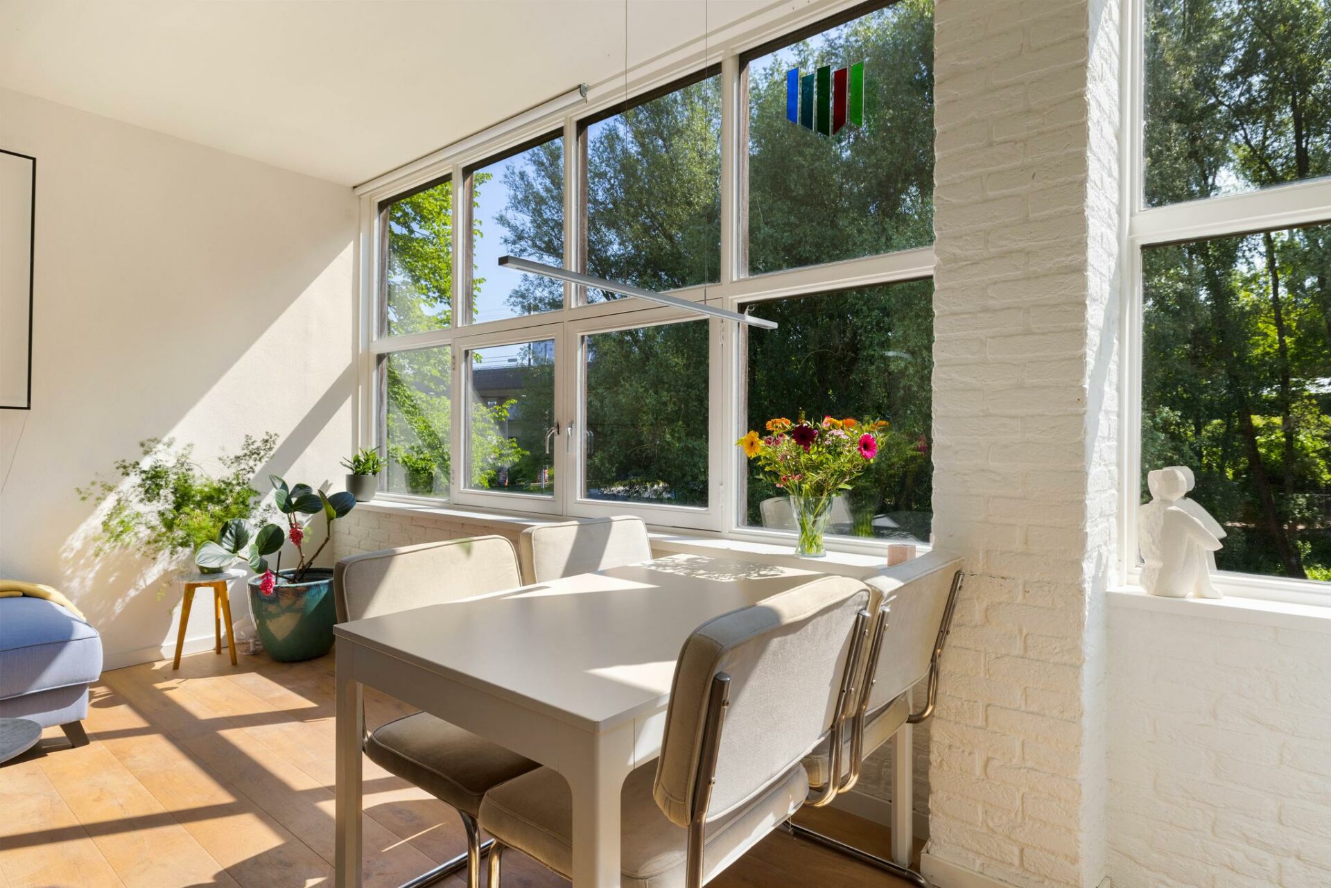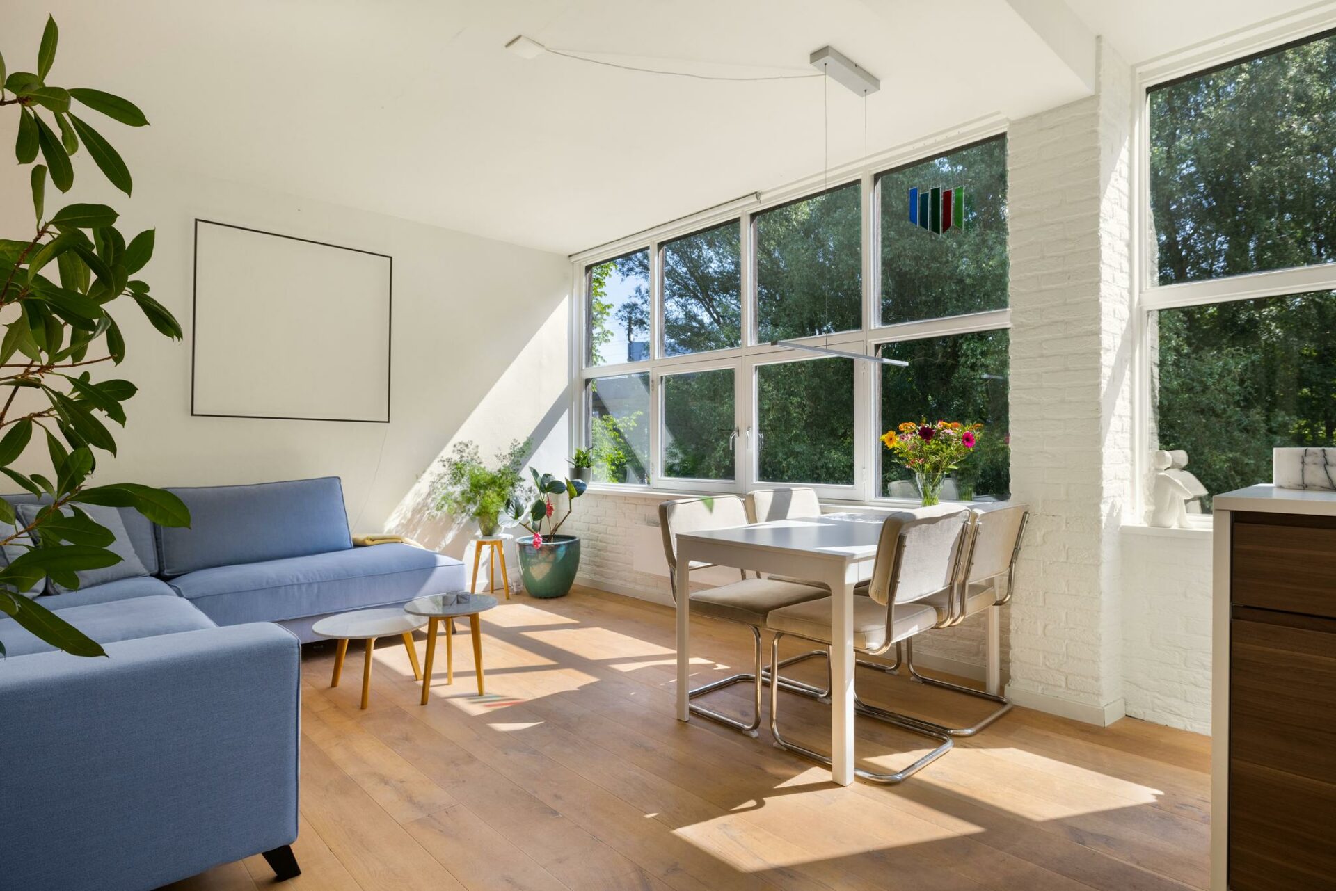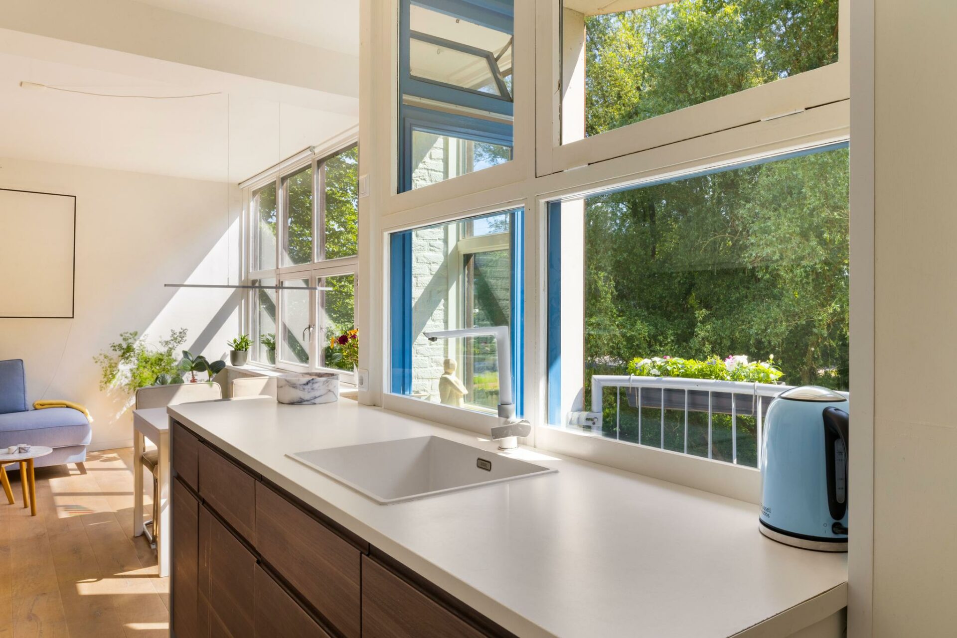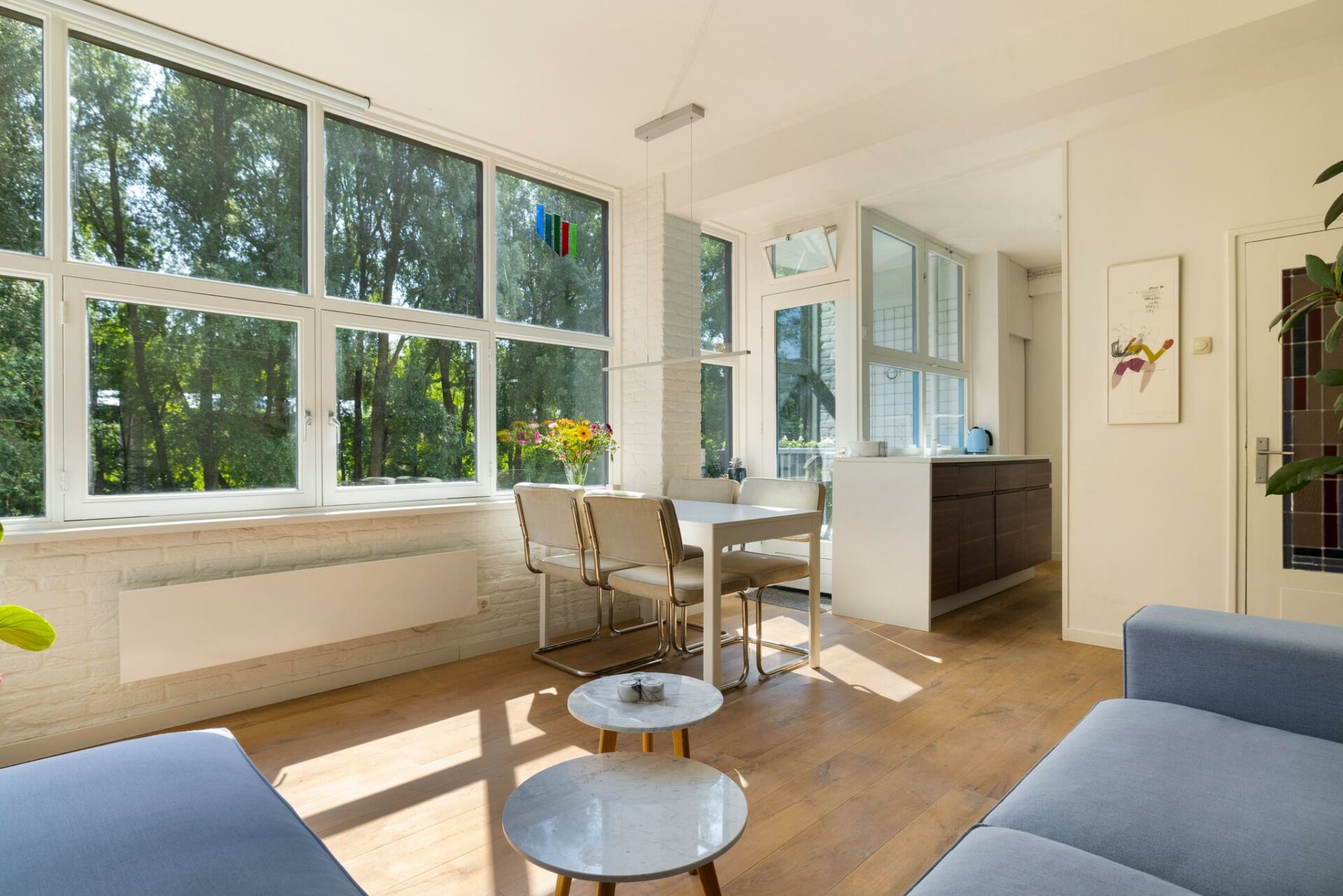 Je woont hier omringd door groen, waardoor het voelt alsof je je midden in de vrije natuur begeeft. En dat terwijl je om de hoek van de drukte en gezelligheid van Bos & Lommer woont en op een steenworp afstand van station Sloterdijk.