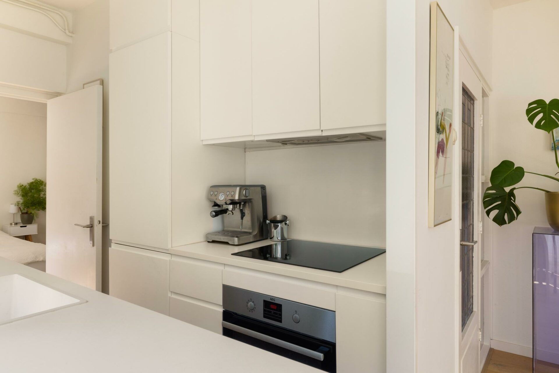 Via de gemeenschappelijke entree stap je binnen in het complex, welke in 2007 is uitgeroepen tot Rijksmonument. Met de lift of trap bereik je de woning op de eerste verdieping. Bij binnenkomst kom je terecht in de hal met opbergruimte en separaat toilet. De woonkamer is voorzien van vele ramen en daardoor zeer licht. Ook geeft de woonkamer tevens toegang tot het fijne balkon op het oosten met groen uitzicht. Je kunt hier heerlijk in de ochtend genieten van een kopje koffie in de zon. De moderne open keuken is gelegen in het midden van de woning en heeft alles wat je maar nodig hebt. Een koelkast, vriezer, AEG kookplaat, oven en een vaatwasser. Hiernaast vind je een afgeschermde bergruimte met de wasmachineaansluiting en elektrische boiler. De slaapkamer is maar liefst 16m2 en heeft genoeg plek voor een king size bed en een grote kledingkast. Ook hier zorgt de grote ramenpartij voor een fijne lichtinval. In de kamer zelf is de wastafel gesitueerd en hiernaast vind je de douche. De douche en het separate toilet hebben dezelfde stijl en zijn 2 jaar geleden gerenoveerd. De rest van het appartement is in 2018 gerenoveerd. Er ligt een mooie houten vloer en alles ziet er netjes uit. Op de begane grond is er nog een aparte berging van 2m2.