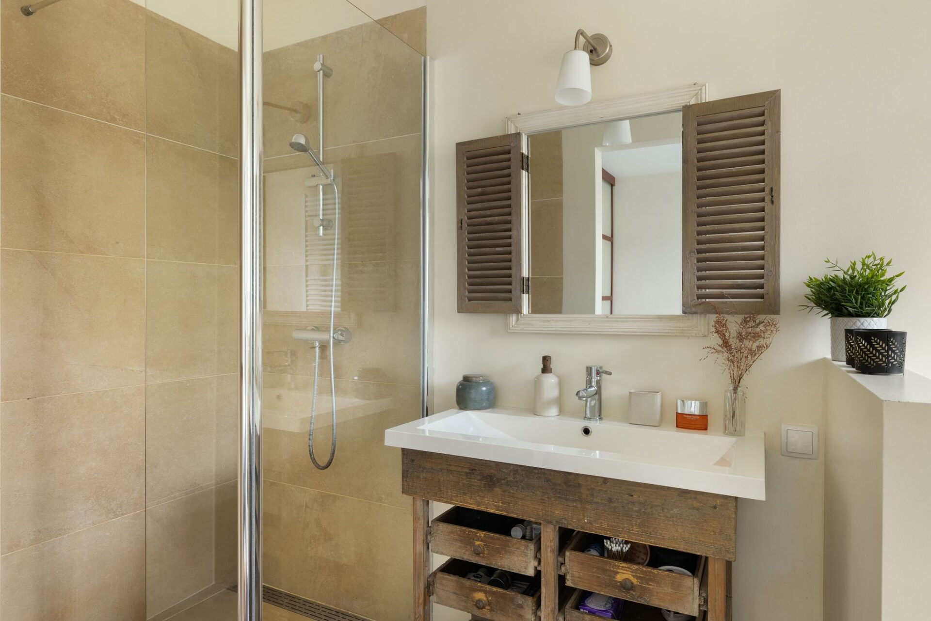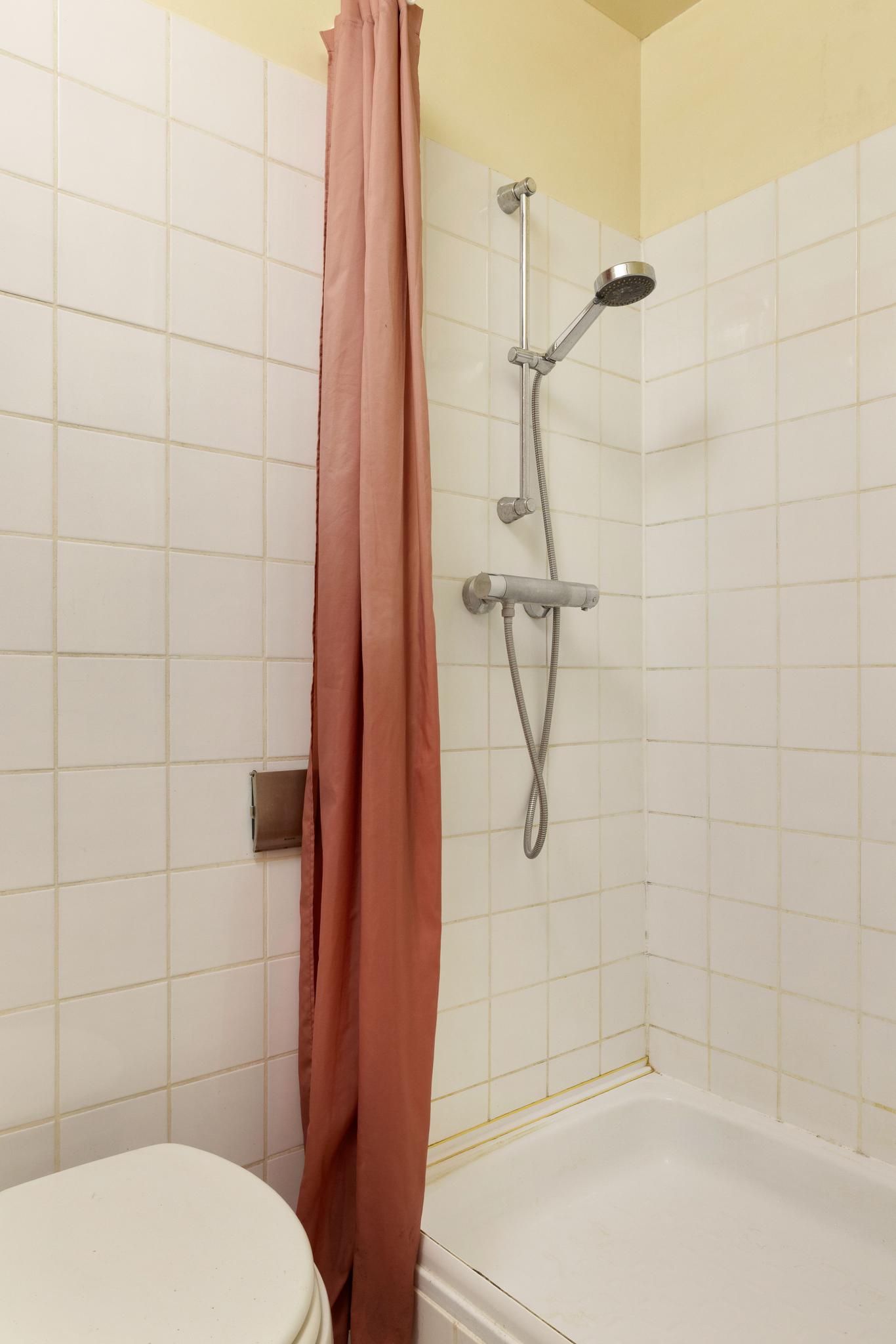 Overloop met 2e (eenvoudige) badkamer met toilet en douche en een grote berging. Verder twee ruime slaapkamers waarbij de voorste kamer een plafond heeft met een daklicht. De achterste (slaap)kamer is nu een multifunctionele ruimte met eenvoudig keukenblok, aansluiting voor de wasmachine en werkruimte.