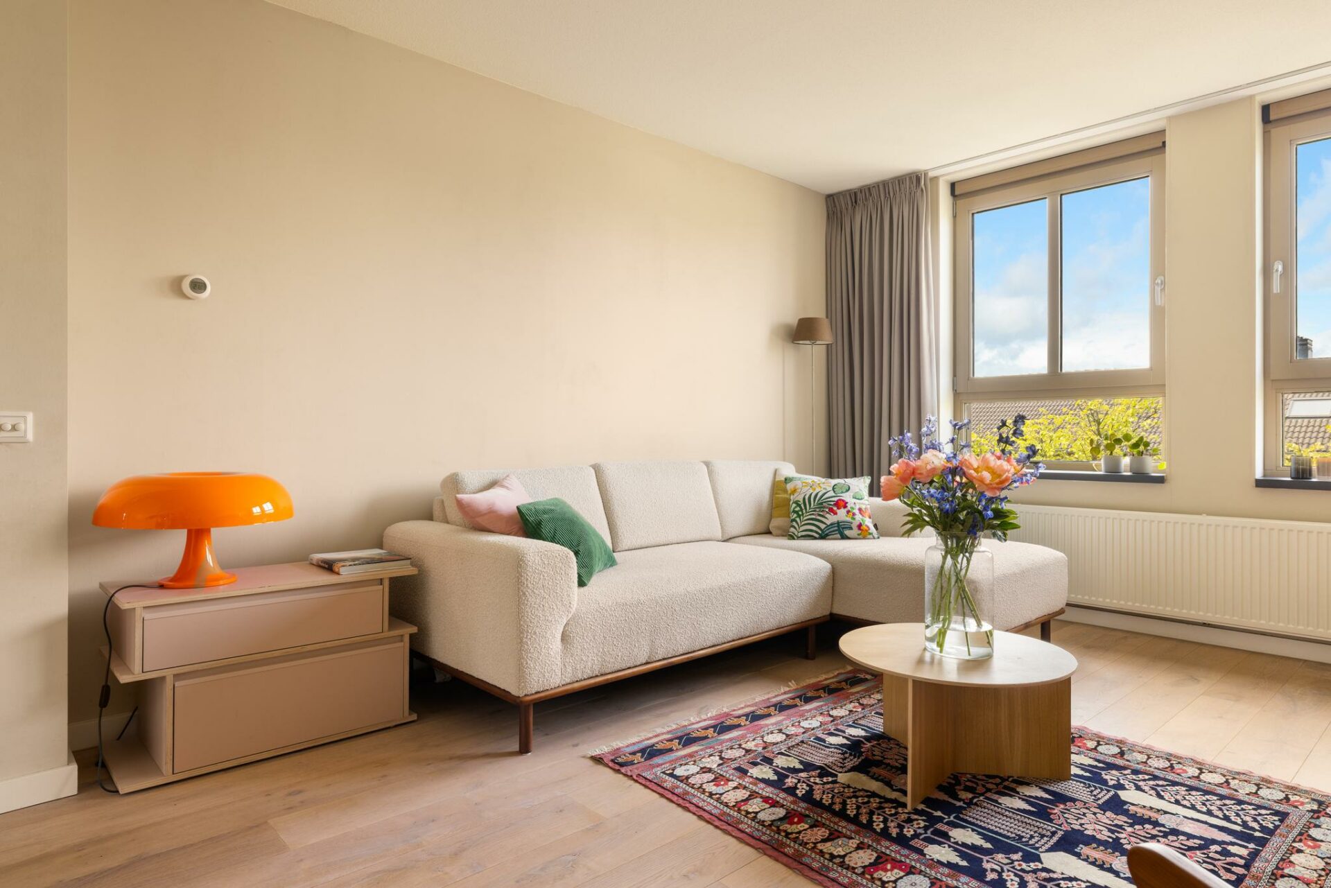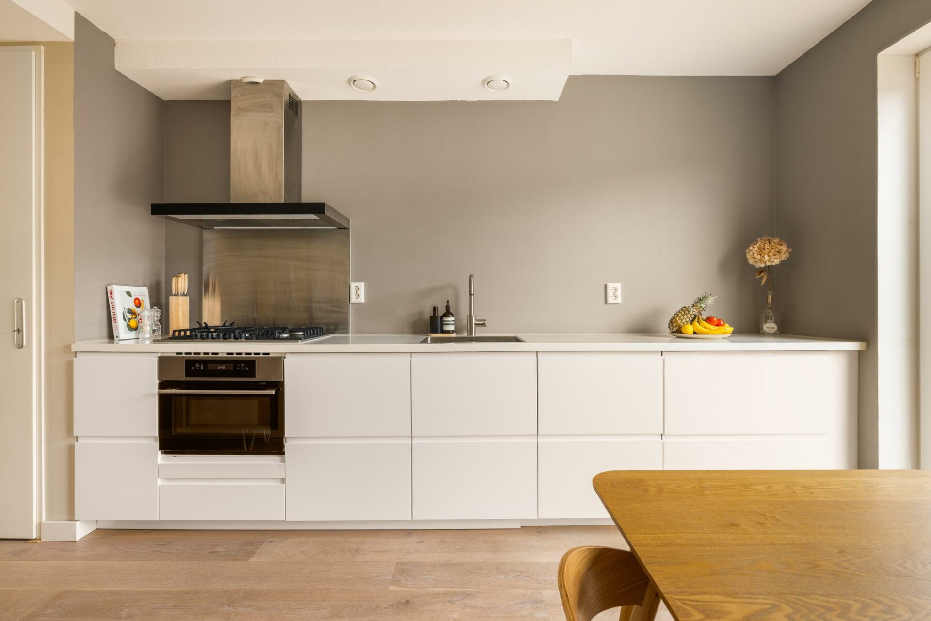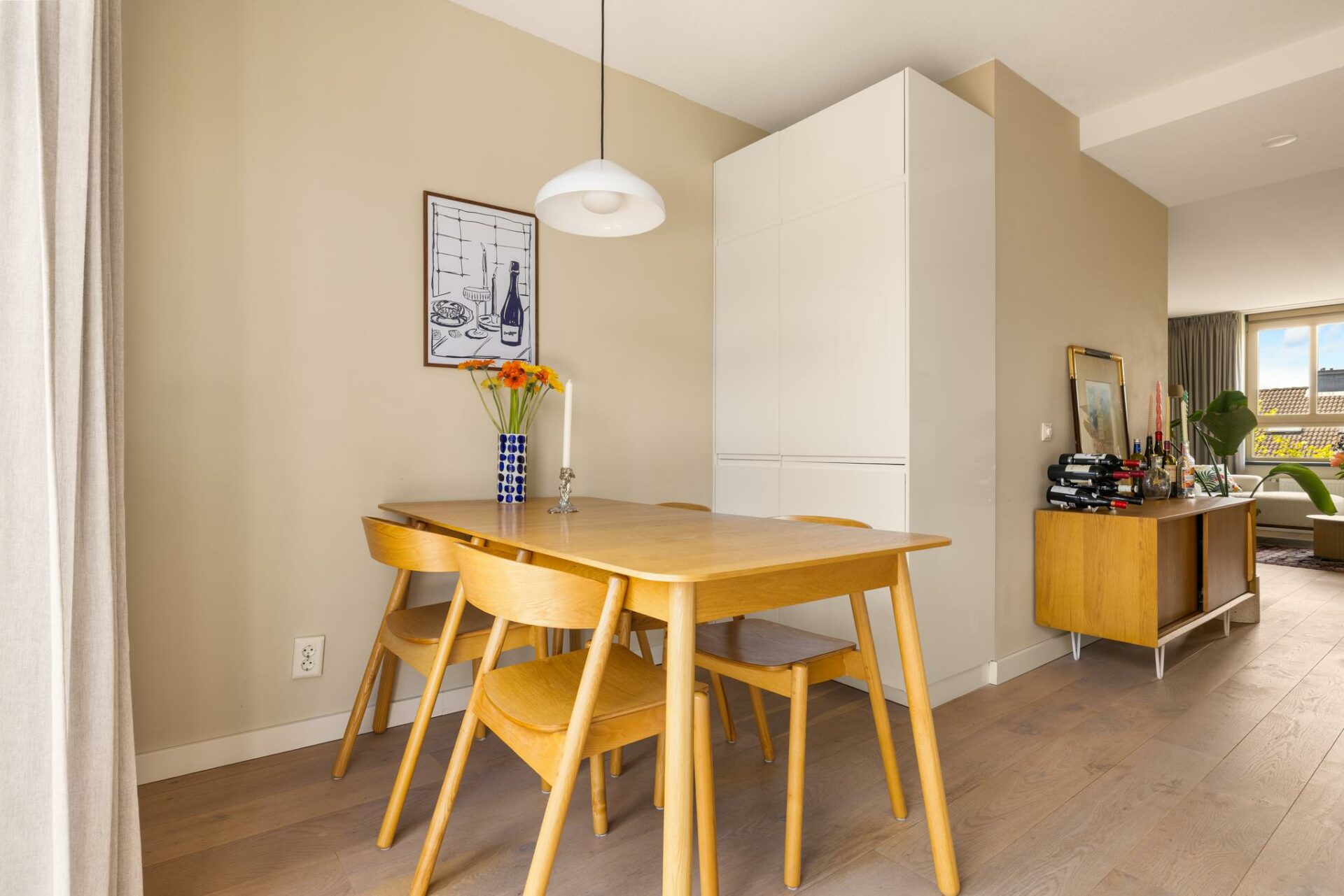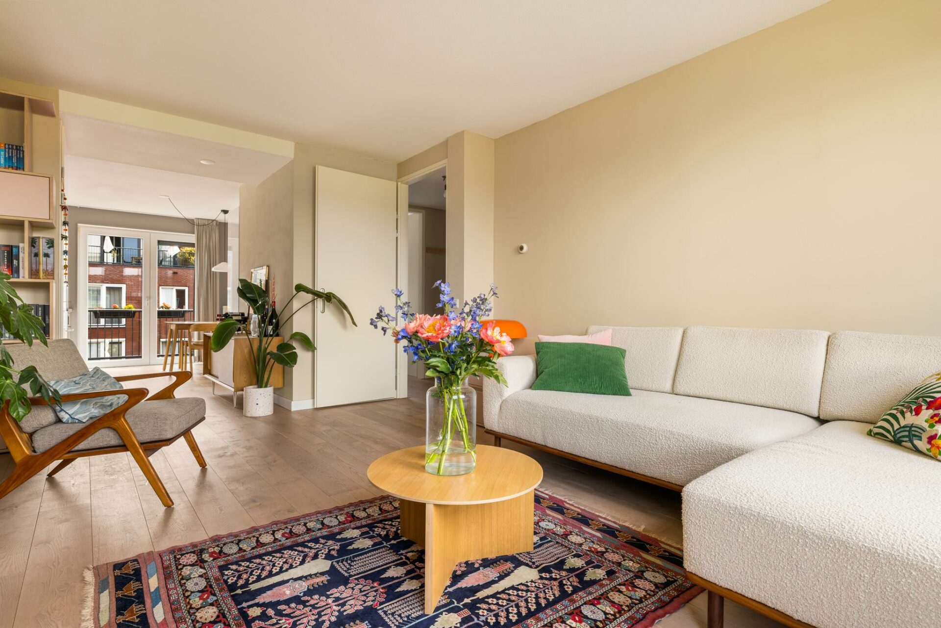 The apartment is part of a stylish and characteristic 1930s building, designed by the Amsterdam-based association ‘Zomers Buiten’. Jan den Haenstraat boasts wide sidewalks lined with beautiful linden trees on both sides.
