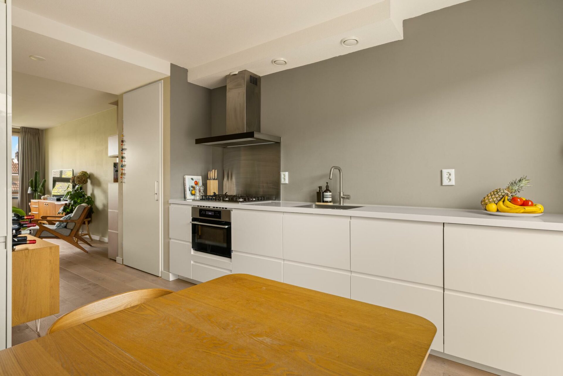 Portiek entree met karakteristieke deur met bellentableau en brievenbussen. Via het trappenhuis bereik je het appartement gelegen op de derde verdieping. De hal is voorzien van intercom installatie, meterkast en een inbouwkast met de mechanische ventilatie unit en cv-installatie. Via de hal bereikt je het separate toilet met fonteintje alsmede de entree naar de slaapkamer. Deze ruimte is voorzien van een ruime wandkast. De badkamer is voorzien van een inloopdouche en een wastafel. Vanuit de hal bereik je tevens de licht overgoten woonkamer met riant uitzicht. De moderne open woonkeuken is voorzien van energiezuinige inbouwapparatuur en biedt toegang tot het zonnige balkon. Het gehele appartement is voorzien van een keurige lamel parketvloer en strakke muren.