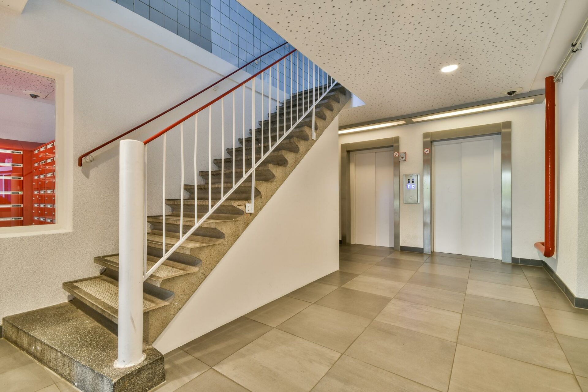 The complex has a central, secure entrance and a hallway with two elevators and access to the storage units. These storage areas are also accessible from outside, ideal for those arriving by bike. You can reach the second floor via the elevator or stairs.