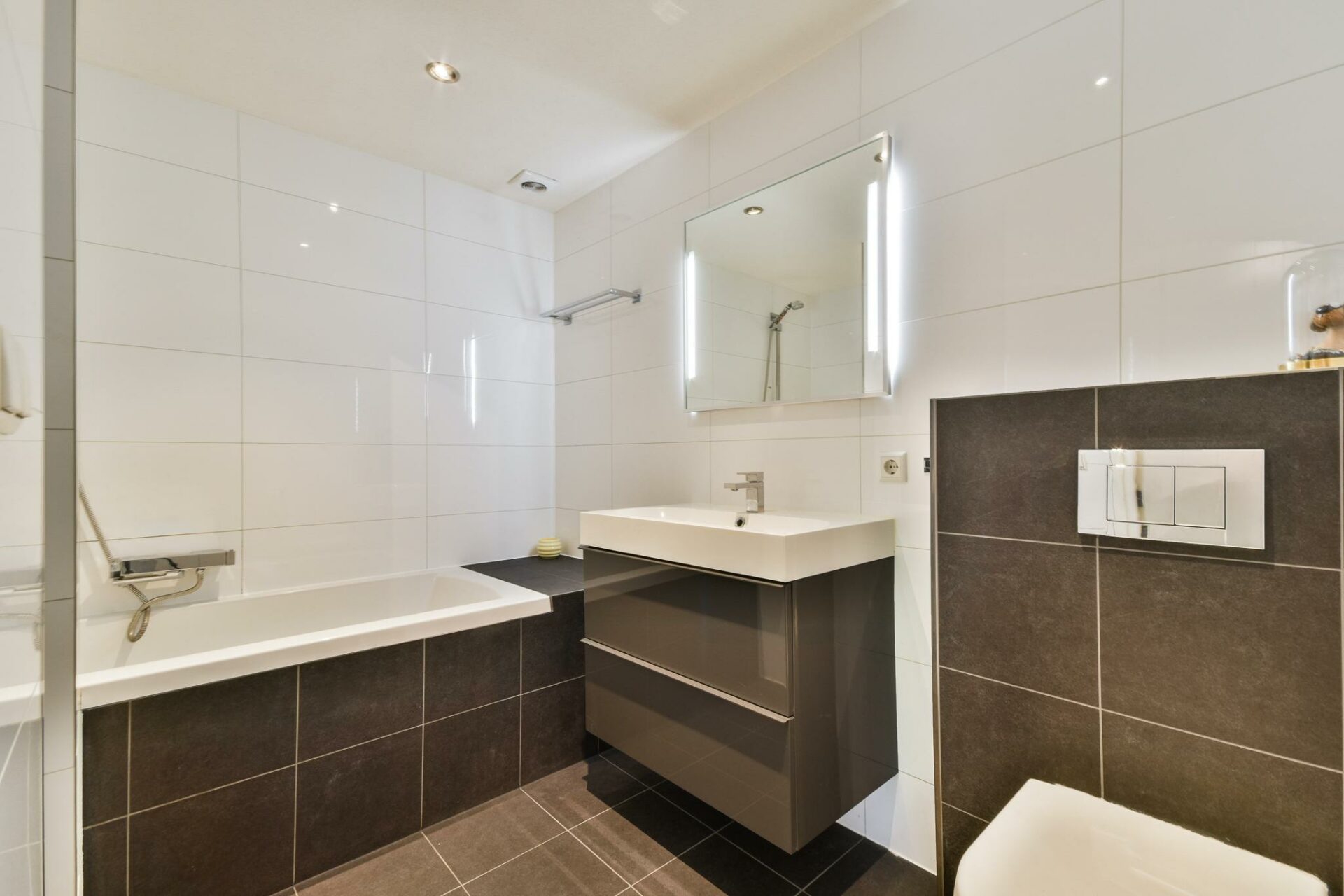 – Spacious bathroom with bathtub and modern fixtures