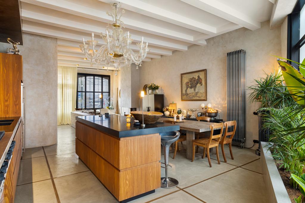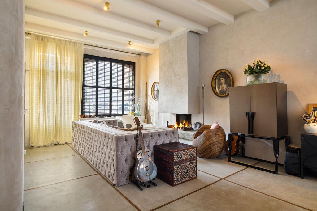 Via uw eigen voordeur bereikt u de hal die u toegang geeft tot de begane grond. Deze ruimte is werkelijk waar fenomenaal! Een vloer van beton, de geverfde muren en de houten balken maken dit tot een pracht plaatje. De open haard zorgt voor veel gezelligheid en de plantenbak brengt maak de living erg sfeervol. De moderne handmade open keuken is voorzien van alle gemakken! Er is divers inbouwapparatuur aanwezig zoals een 6 pits gasstel, oven, vaatwasser, koelkast en vriezer. Aan de bar kan er gezellig geborreld/getafeld worden. Tevens vindt u hier een separaat toilet met niche en een aparte ruimte voor de wasbak. Hiernaast bevindt zich een bergingskast.