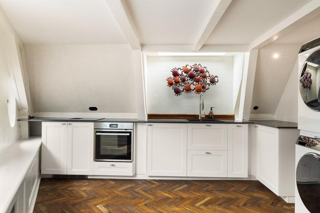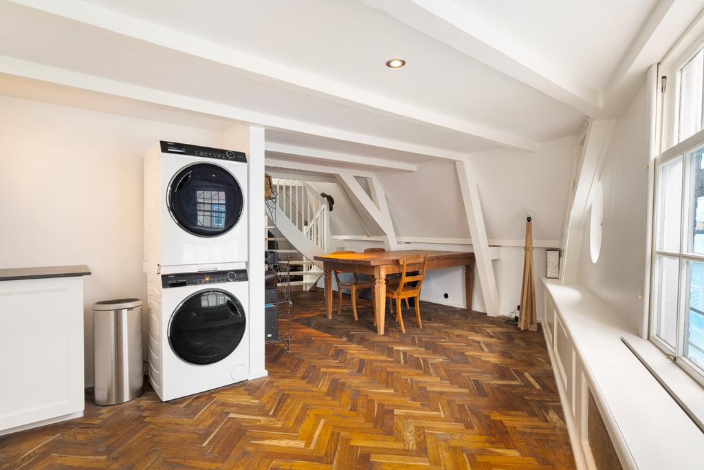 De tweede verdieping is een perfecte plek voor bijvoorbeeld een studerend kind, familie of gasten. De ruimte is voorzien van een prachtige Hongaarse punt vloer en houten balken. De splinternieuwe keuken heeft een oven/magnetron, vaatwasser en een inductiekookplaat. Ook de wasmachine- en drogeraansluiting bevinden zich hier. De tweede badkamer is voorzien van een wastafelmeubel met 2 wasbakken, inloopdouche en een toilet.