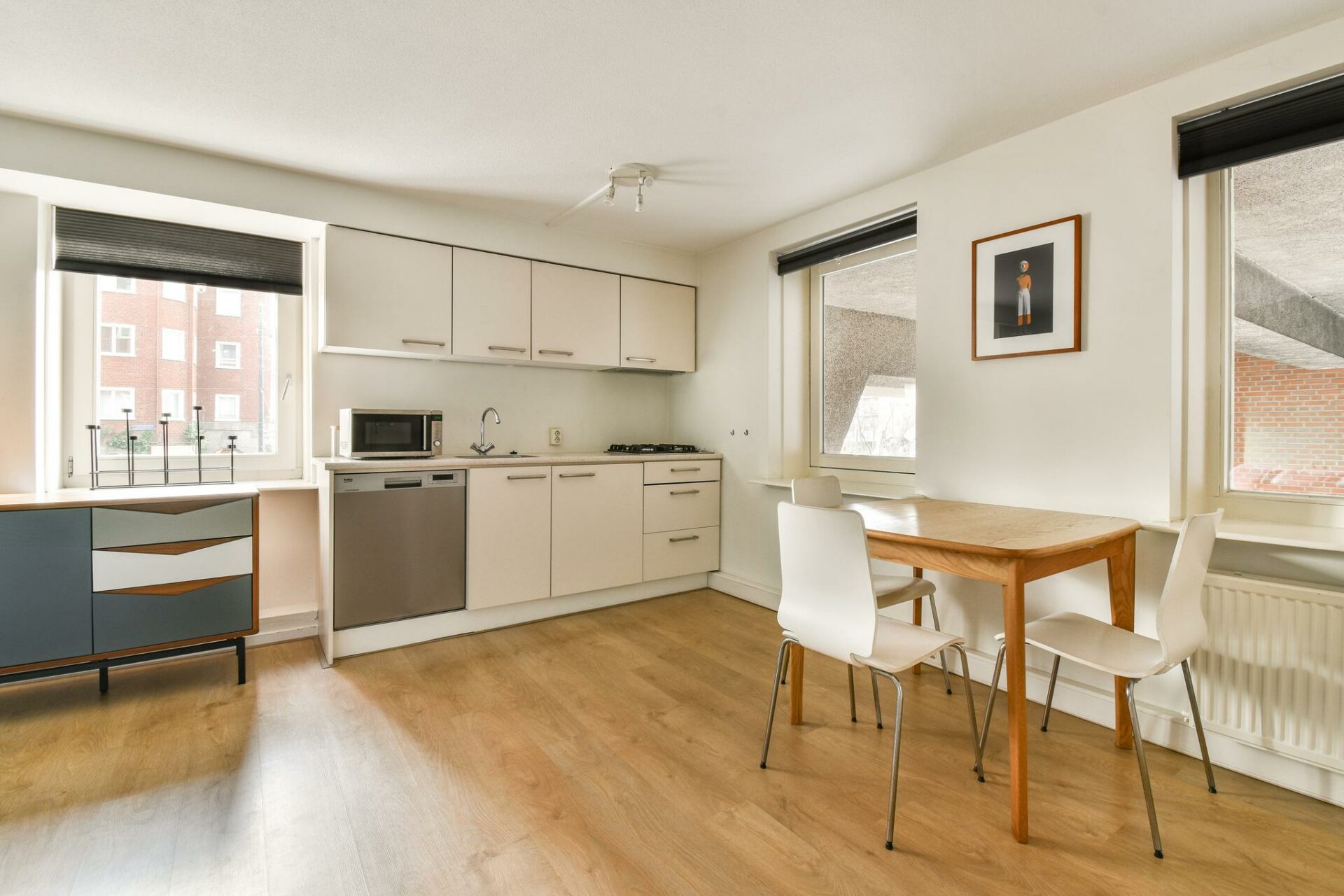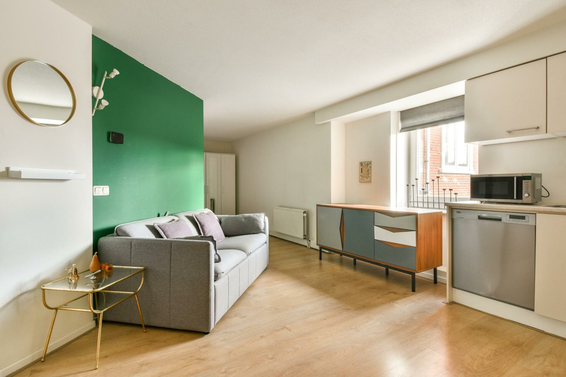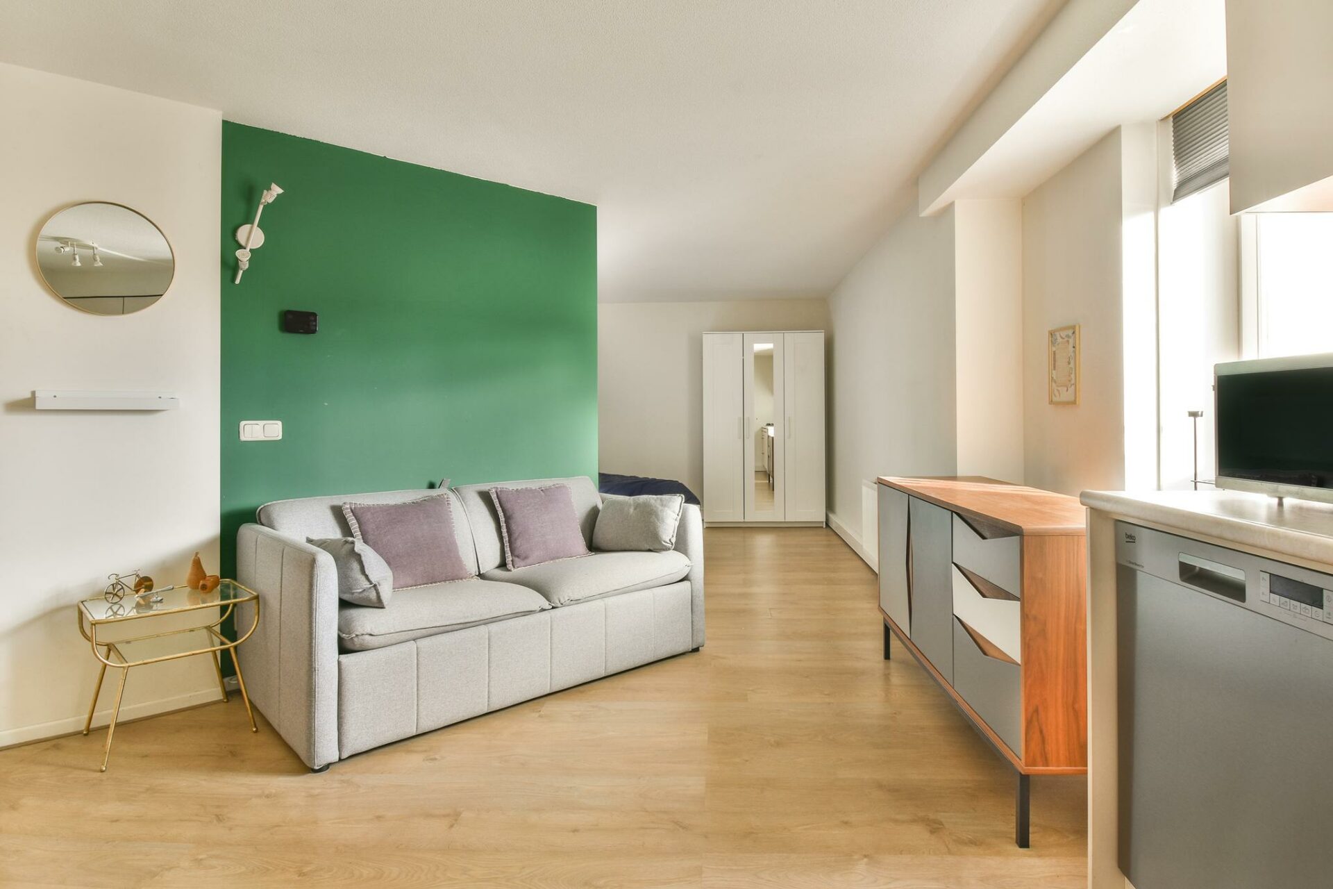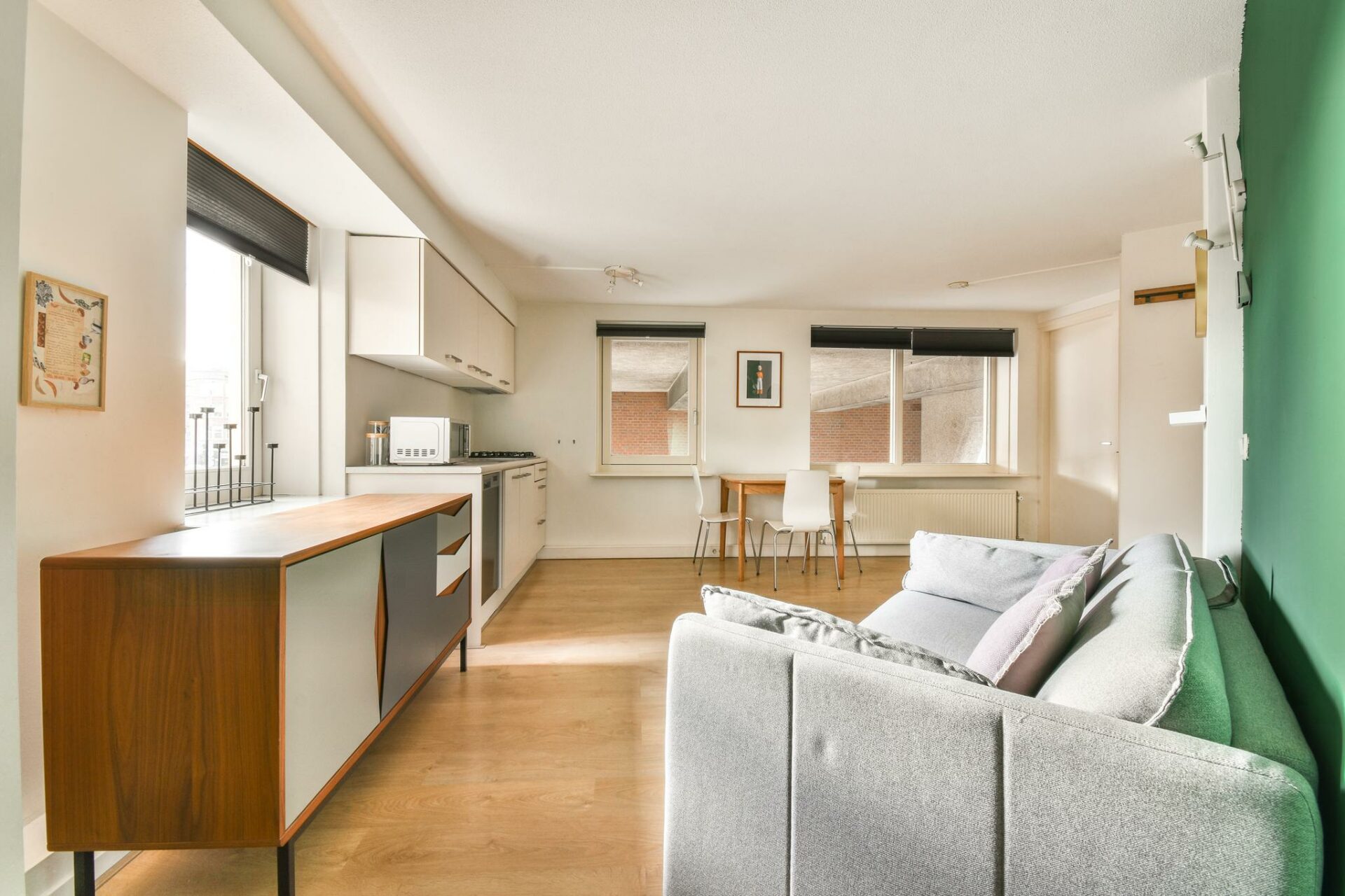 The entire apartment has a neat laminate floor.