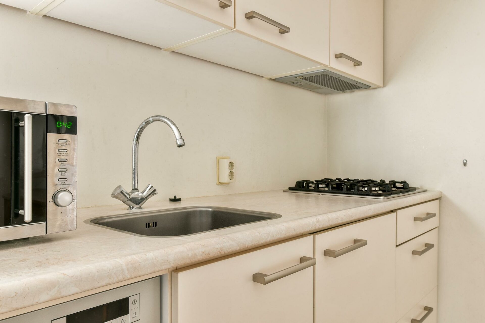 Via het goed onderhouden trappenhuis of met de lift bereik je de woning op de eerste etage. Je komt binnen in de fijne woonkamer met open keuken. De nette keuken grenst aan de voorzijde van het appartement. Door de speelse indeling is de slaapkamer aan de linkerzijde goed afgeschermd van de woonkamer, je kunt hier vrij gemakkelijk een (afgesloten) slaapkamer creëren door een wandje te plaatsen.