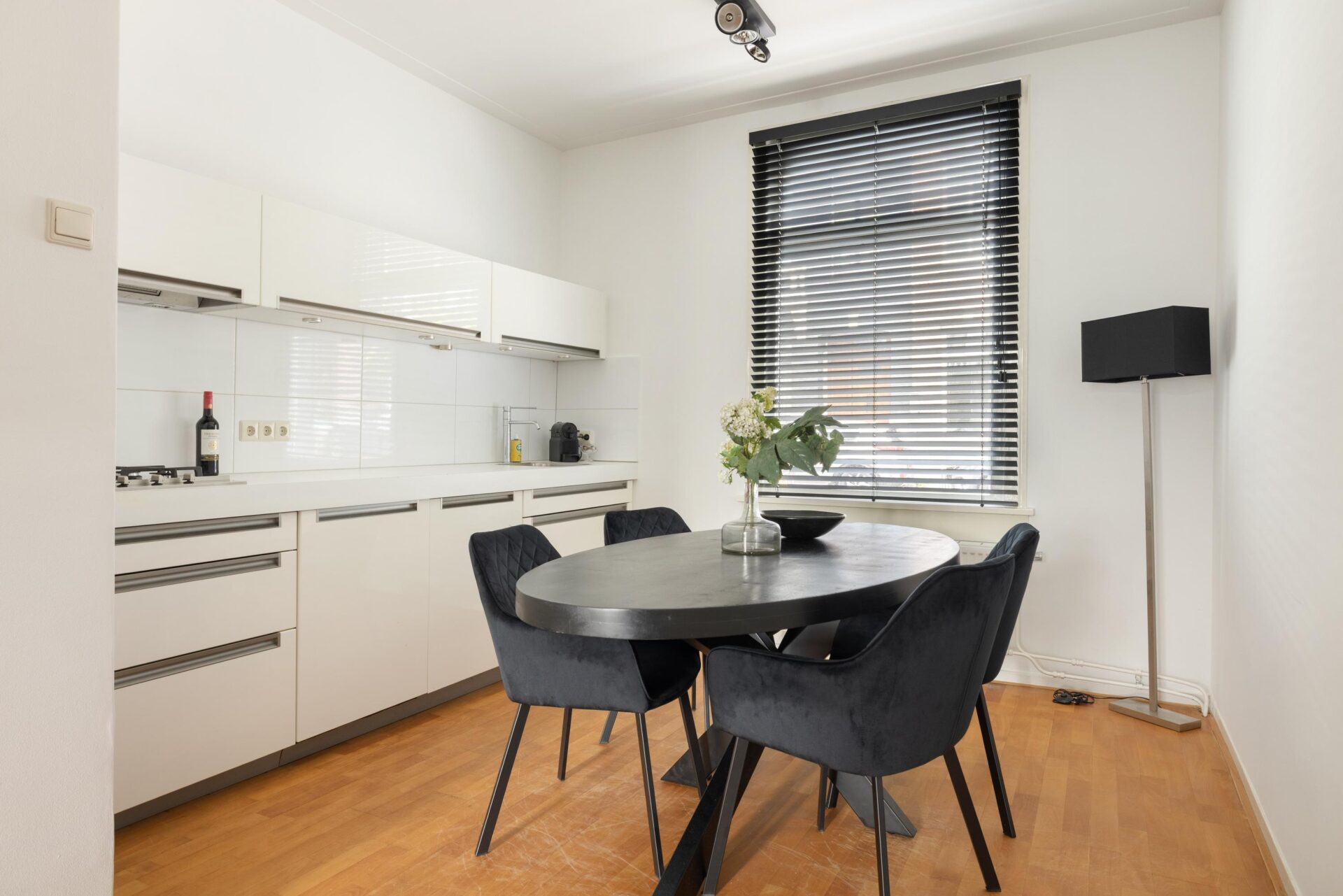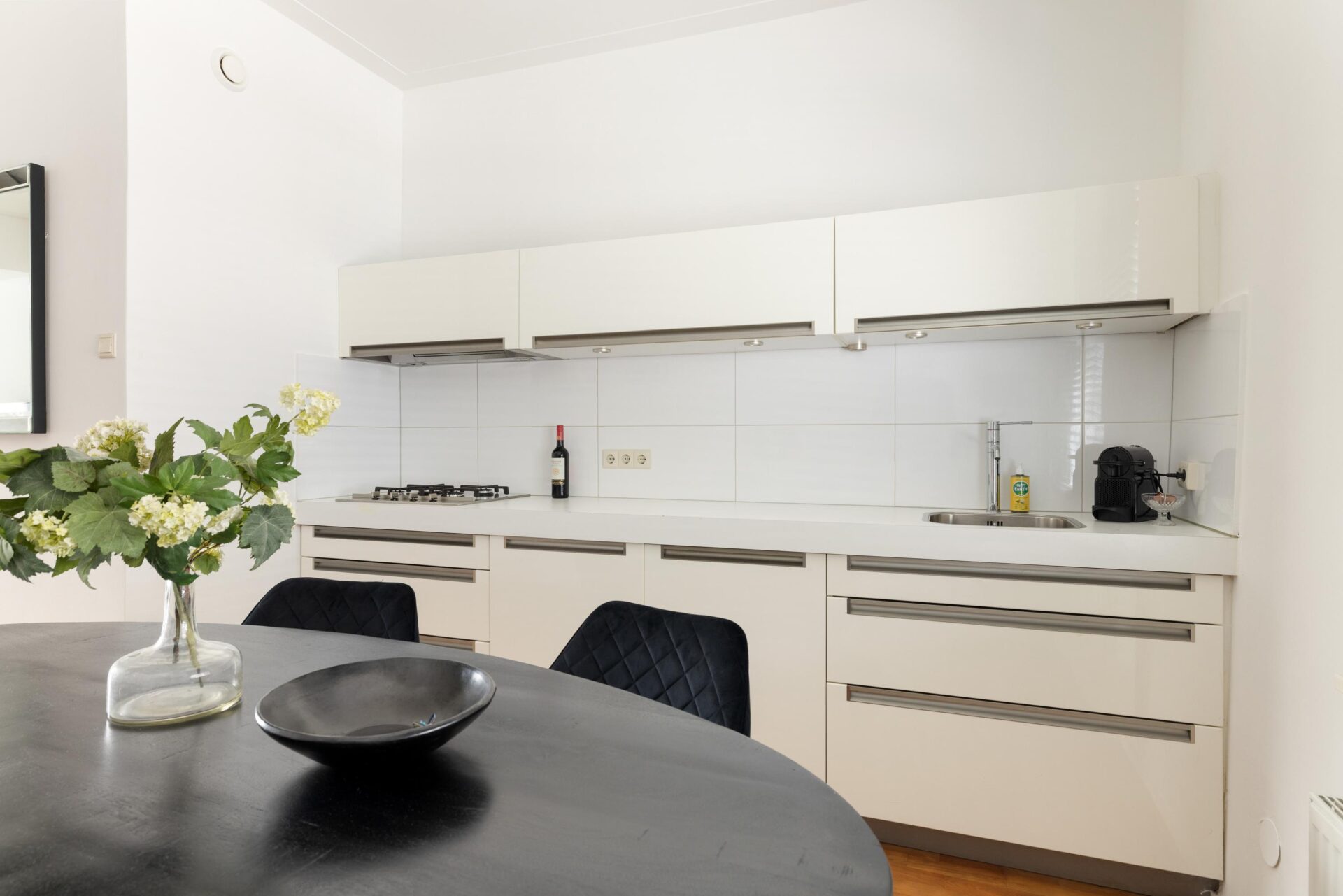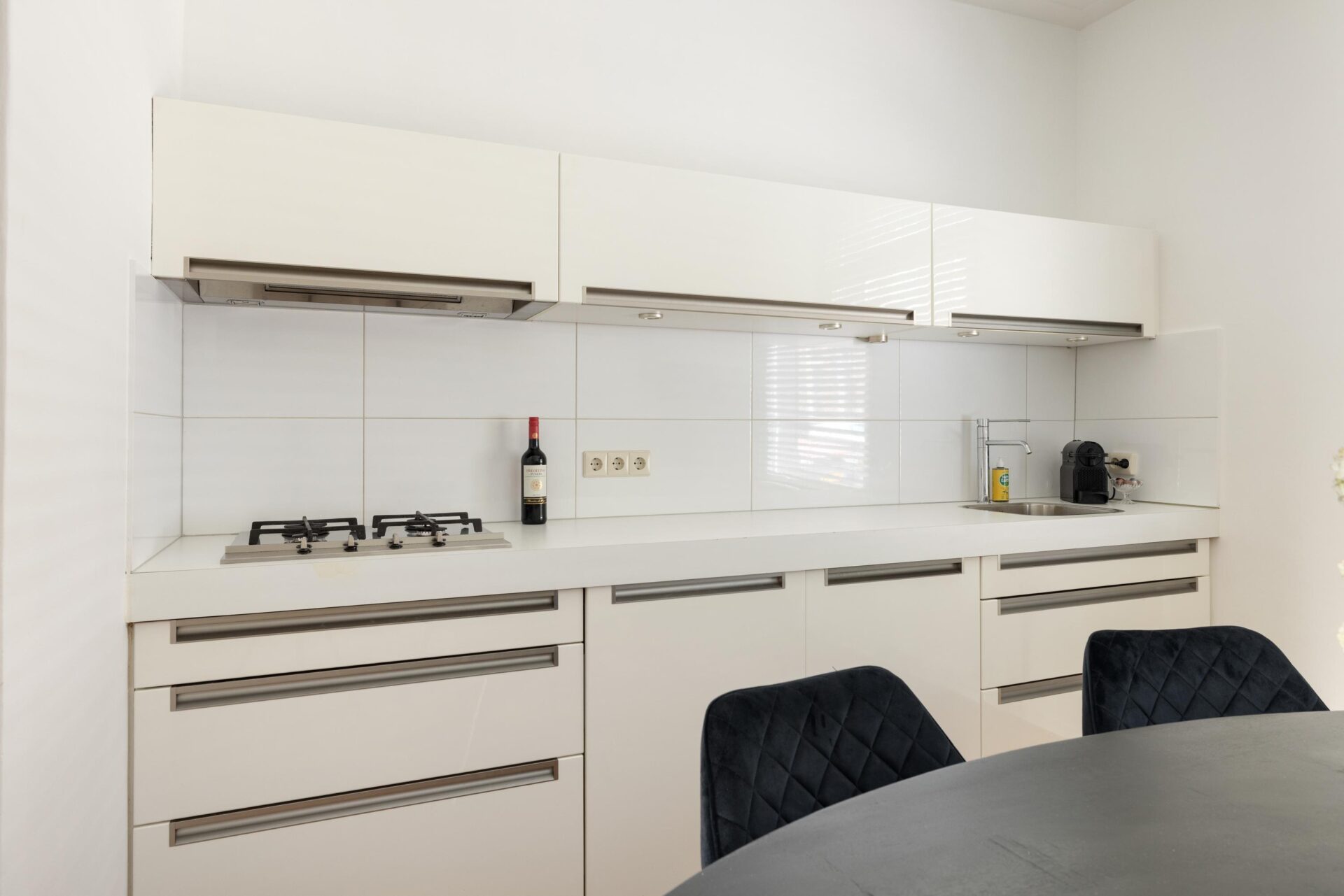 Aan de voorzijde ligt de uitnodigende keuken, uitgerust met inbouwapparatuur en voldoende ruimte voor een royale eettafel. Een perfecte setting voor lange, gezellige diners met vrienden of familie. Tevens is er onlangs een nieuwe intercom met camera geplaatst.