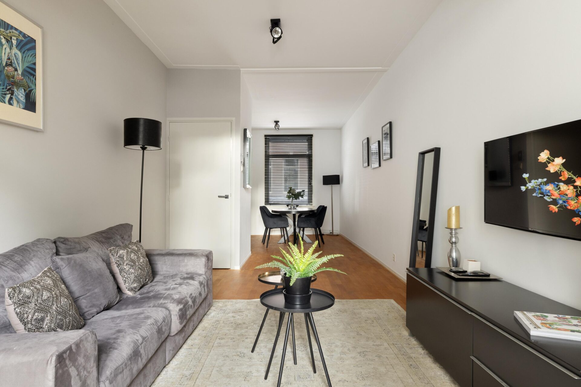 – Volledig gemeubileerd (alleen 3 schilderijen worden meegenomen) en turn-key appartement;