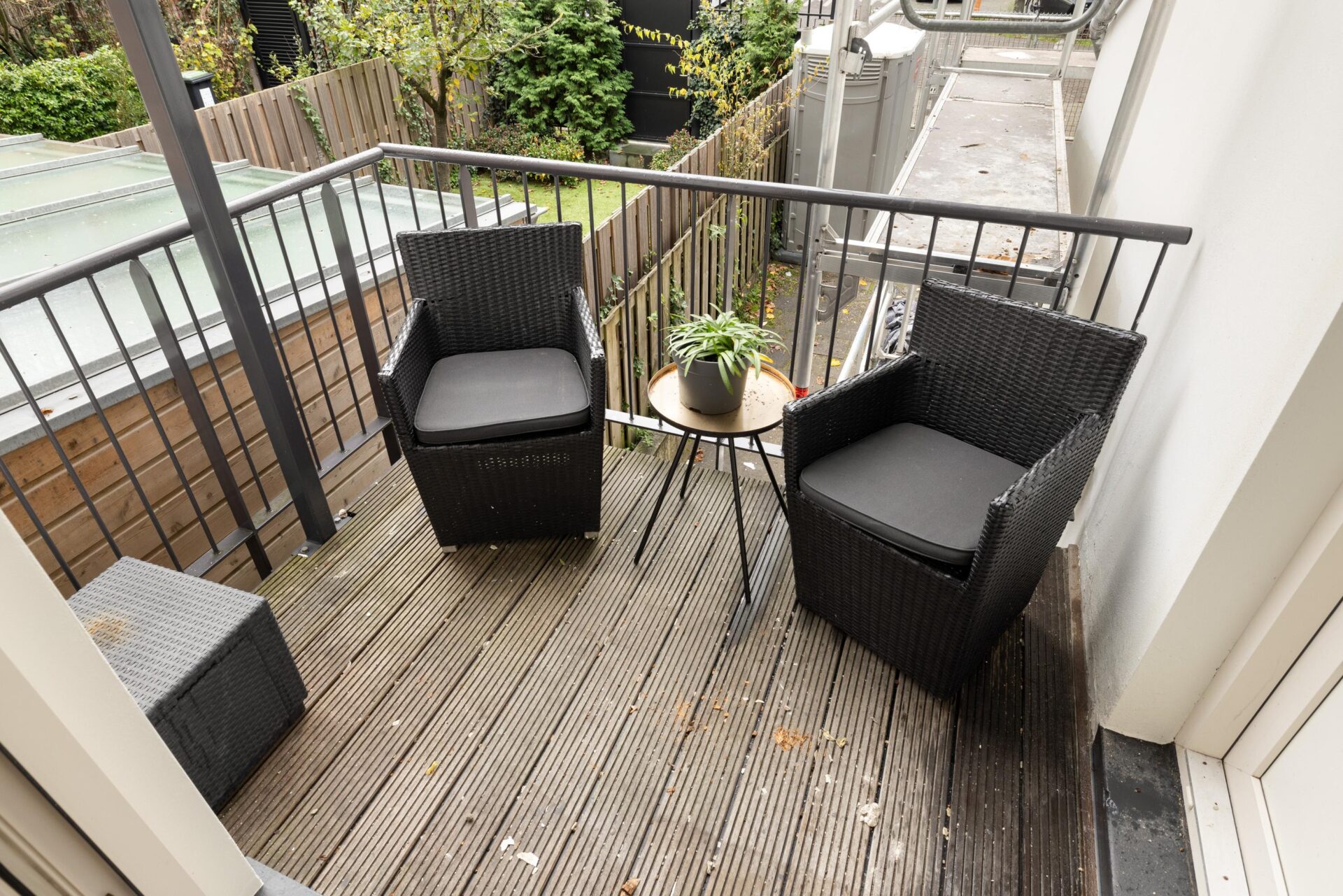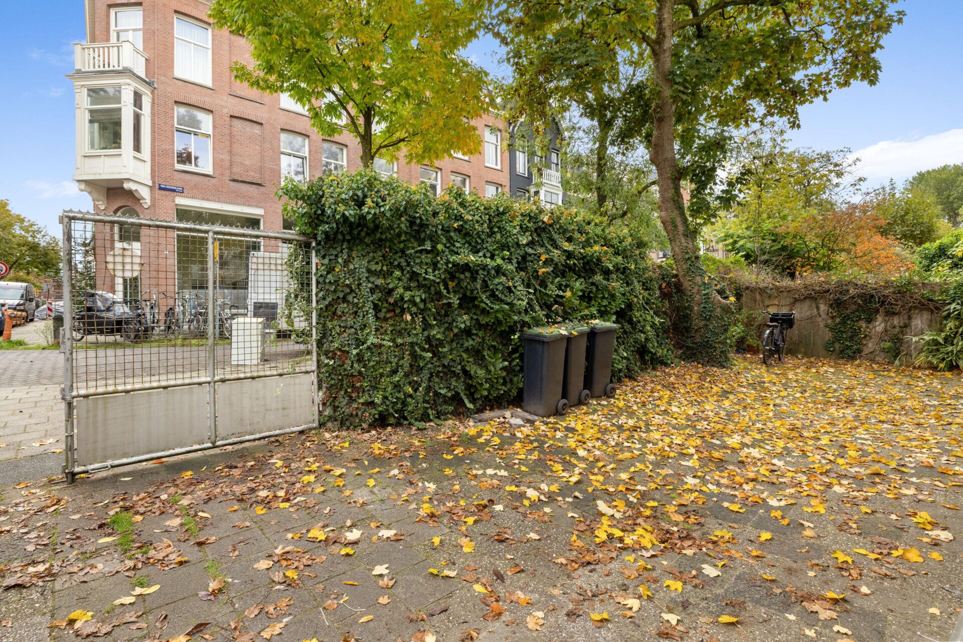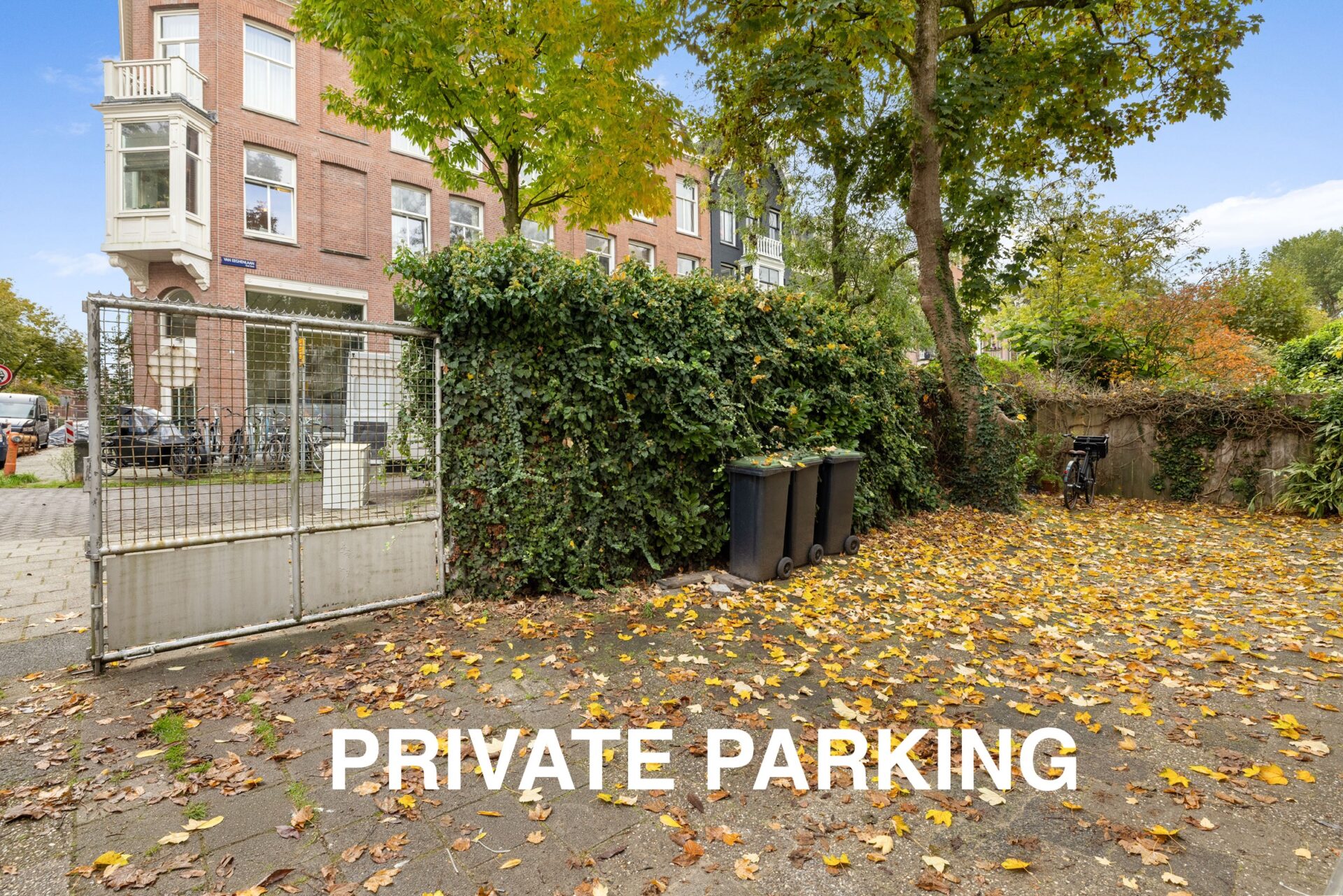 Aan de achterzijde van het gebouw bevindt zich een afgesloten terrein waar u exclusief gebruik kan maken van een eigen parkeerplaats (parkeer vergunning op straat is ook mogelijk op aanvraag). Hier vindt u ook de handige berging (6m2) waar o.a. de CV ketel hangt. Tevens is er ook een opstelplaats voor de fietsen.