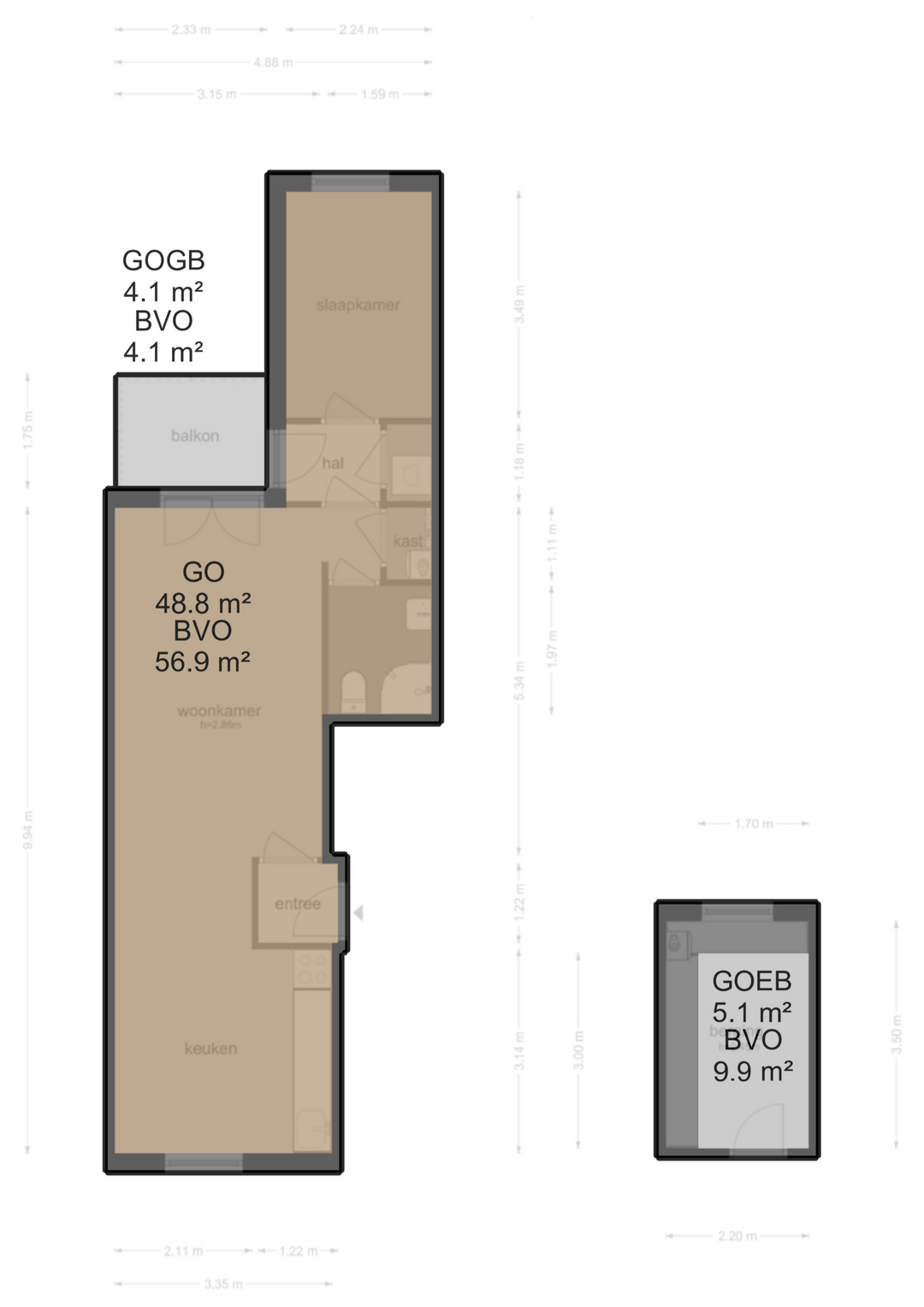 – Woonoppervlak ca 49m² (BBMI gemeten)
