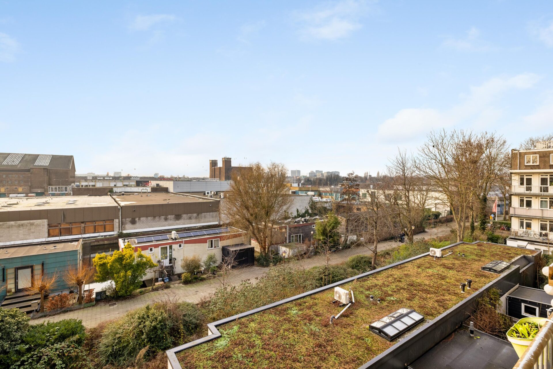 The street itself is quiet and free from through traffic, while all amenities such as supermarkets, shops, cafés, and restaurants are within easy reach. Accessibility is excellent: various tram and bus connections to Amsterdam Central Station and the city center are around the corner, and by car, you can reach the A10 ring road in five minutes.