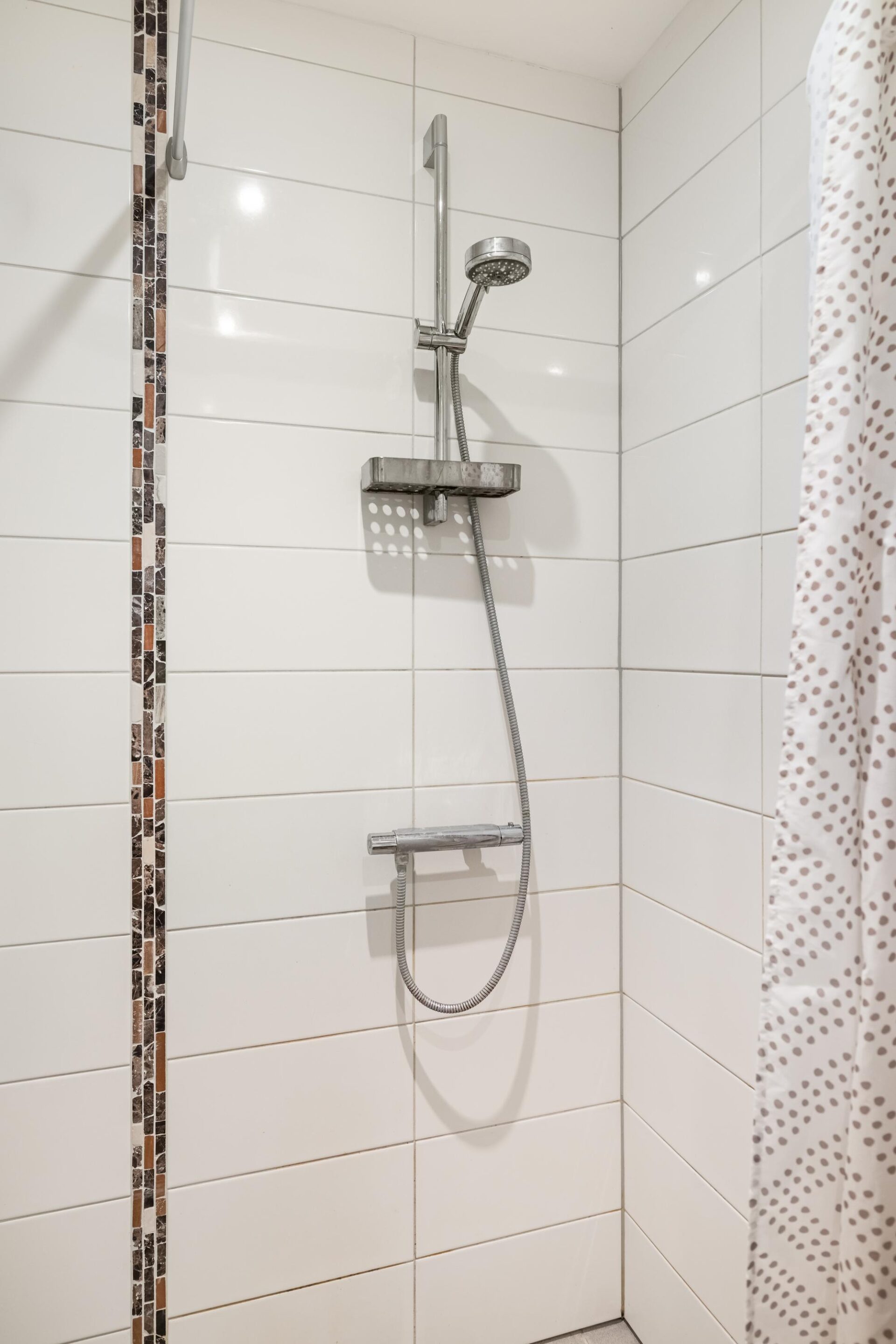 De nette en frisse badkamer is voorzien van een douche, toilet en wastafel. Separaat in de hal is een inpandige berging met aansluiting voor het witgoed.