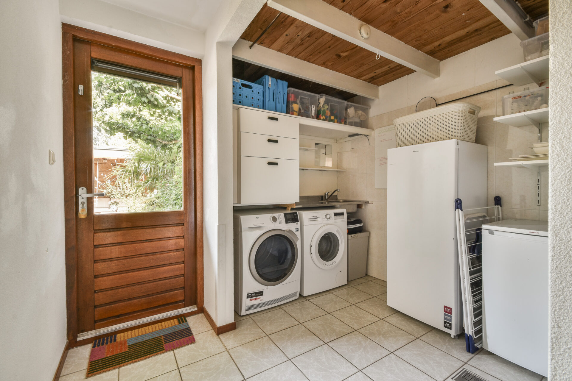 The well-maintained backyard (58m²) is truly a gem. Thanks to the corner location and lush greenery, you can enjoy plenty of privacy here. There is space for a garden set, a lounge set under the canopy, and of course, a barbecue. The garden is in perfect condition and also includes a 7m² storage shed.
