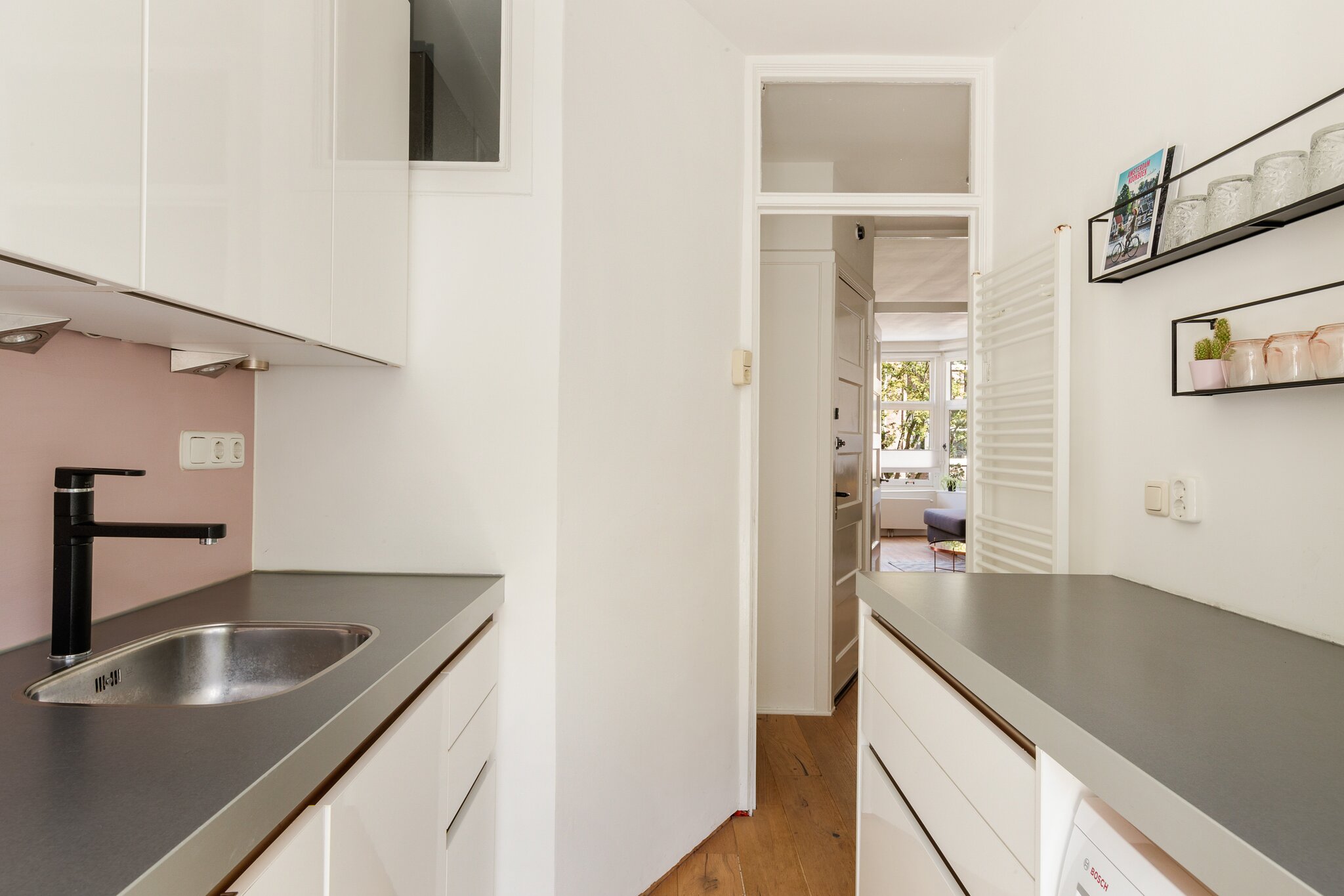 Ideally situated for the A-10 ring road, which can be reached by car within minutes. Also easily accessible by public transport, Amsterdam Zuid WTC station is about 15 minutes by bike from the apartment. Various tram and bus stops are within walking distance, including the center and Amsterdam Zuid WTC station. A parking permit can be applied for immediately. For the most recent information regarding parking permits, we refer to the website of the Municipality of Amsterdam.