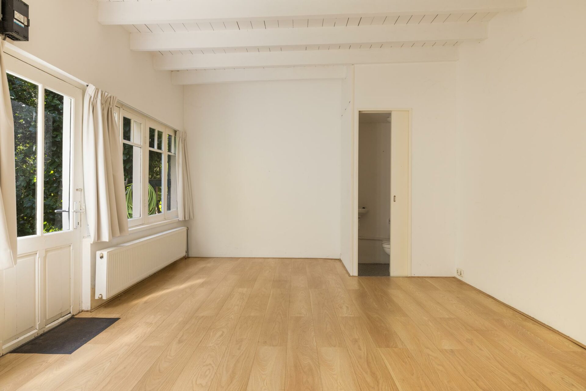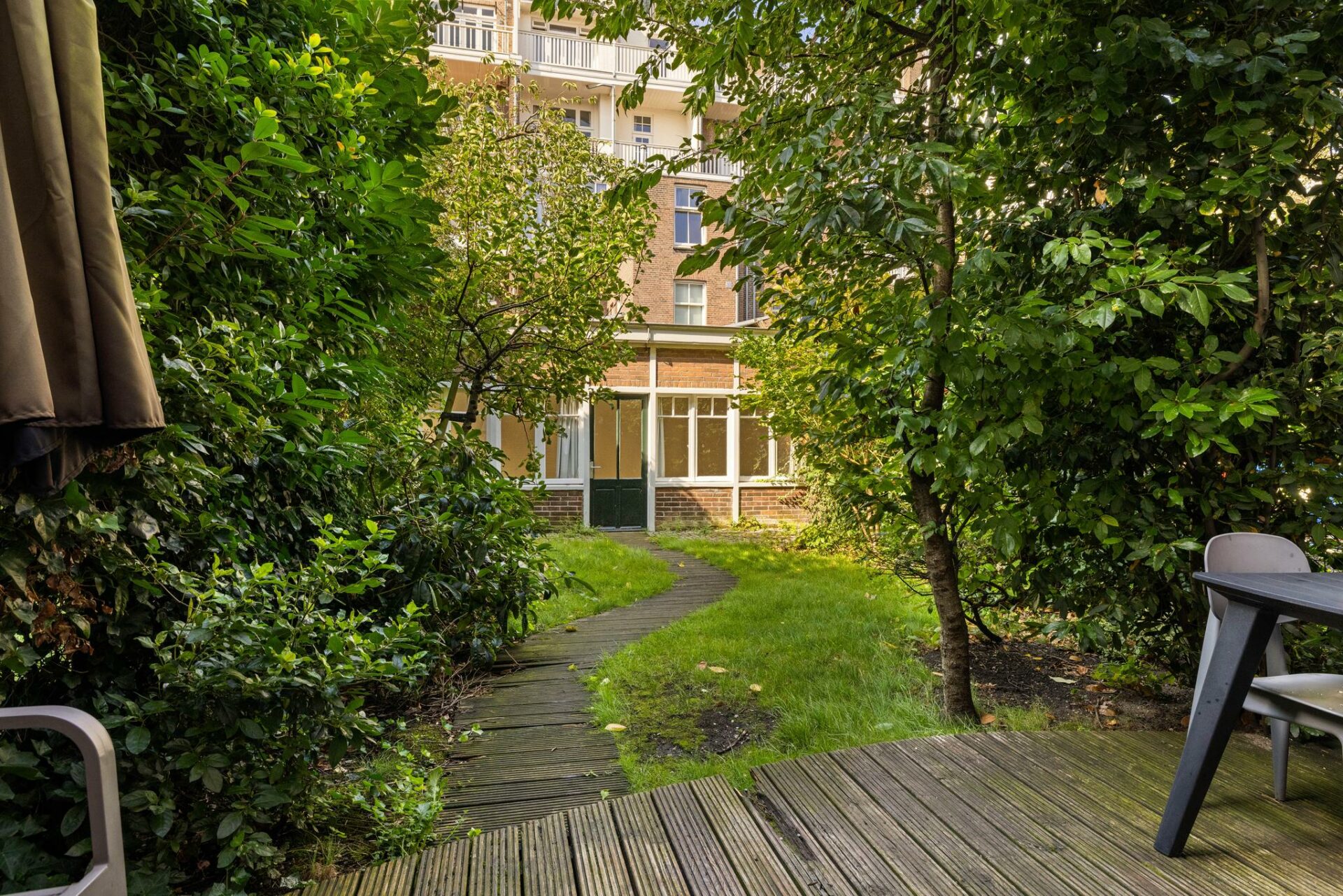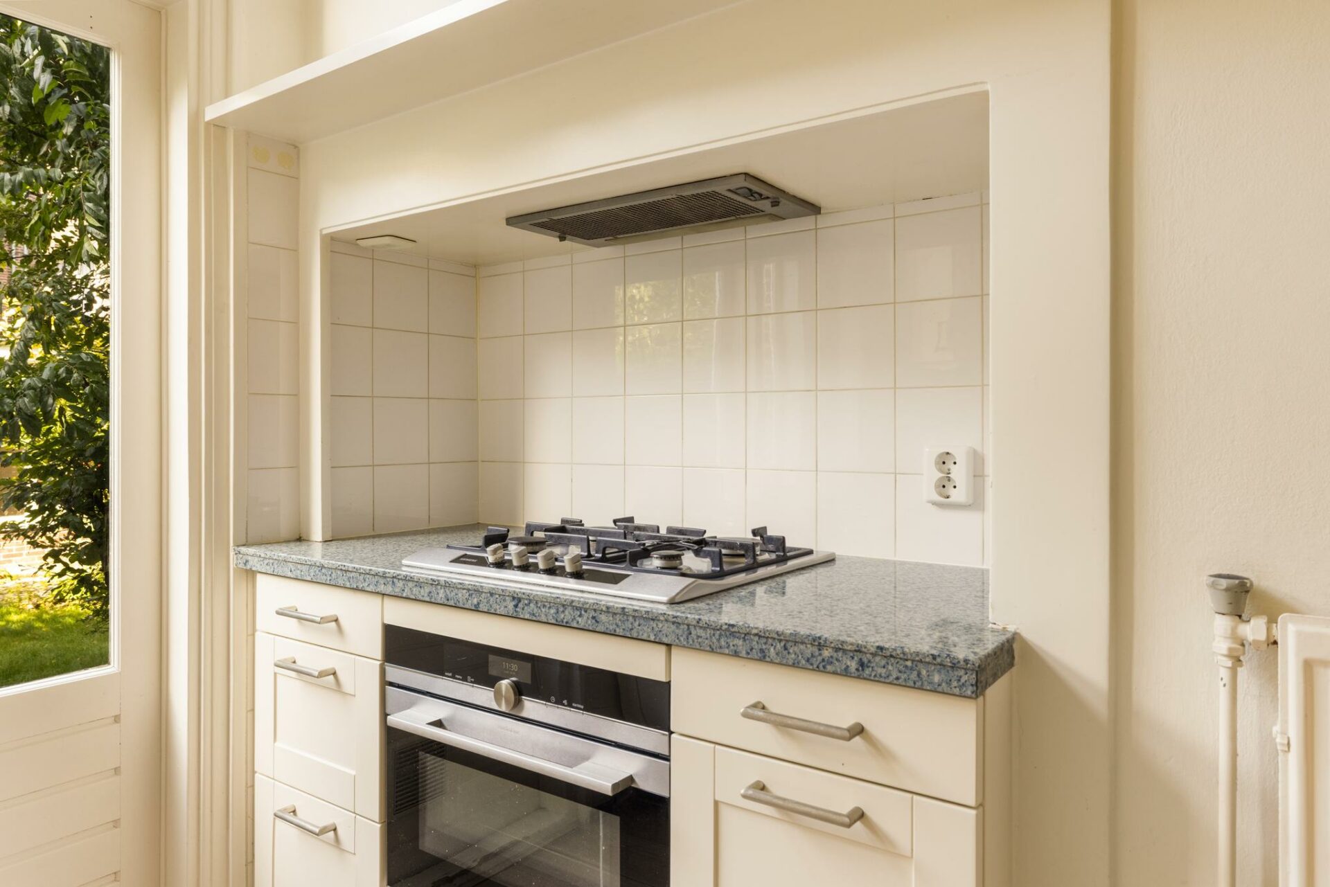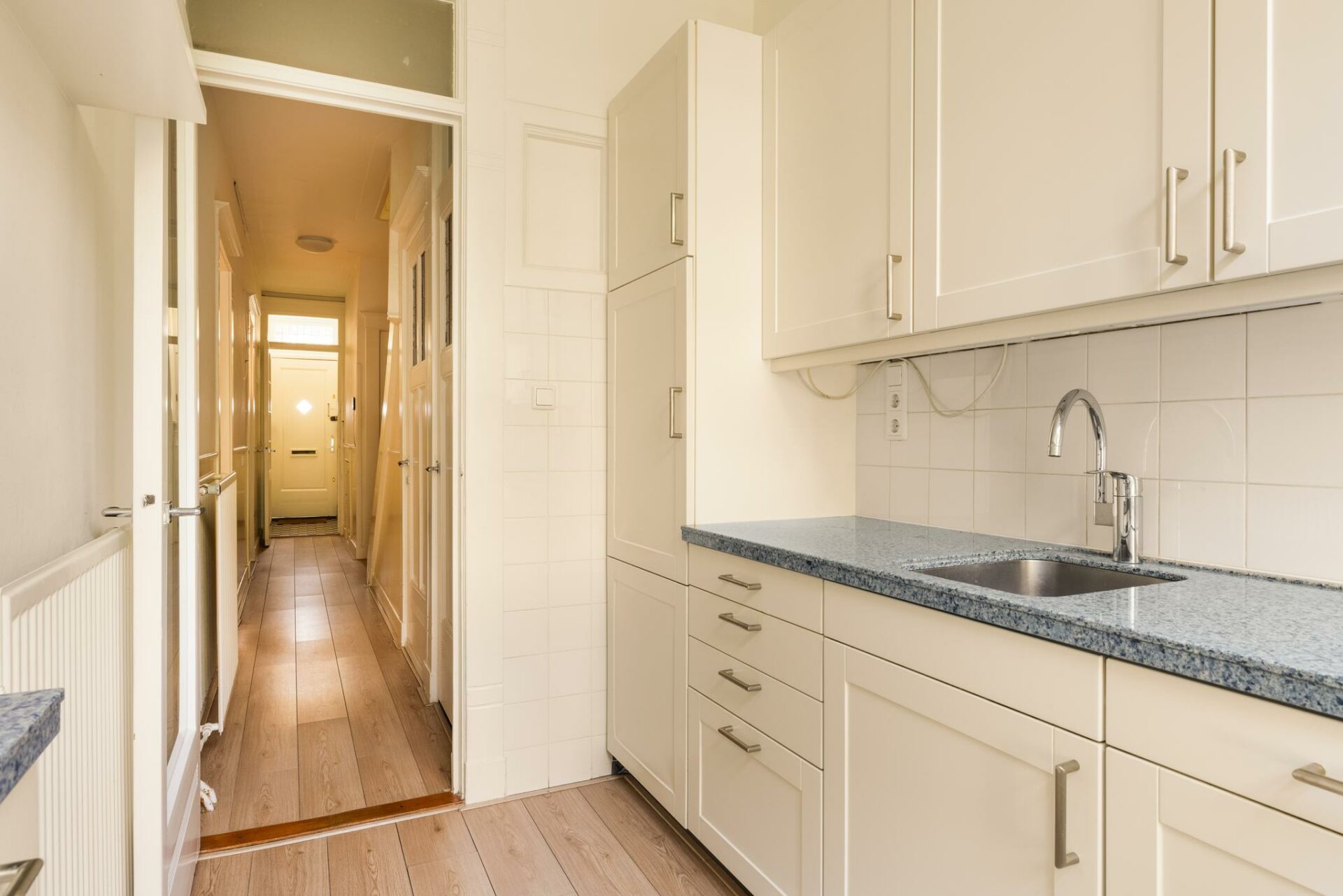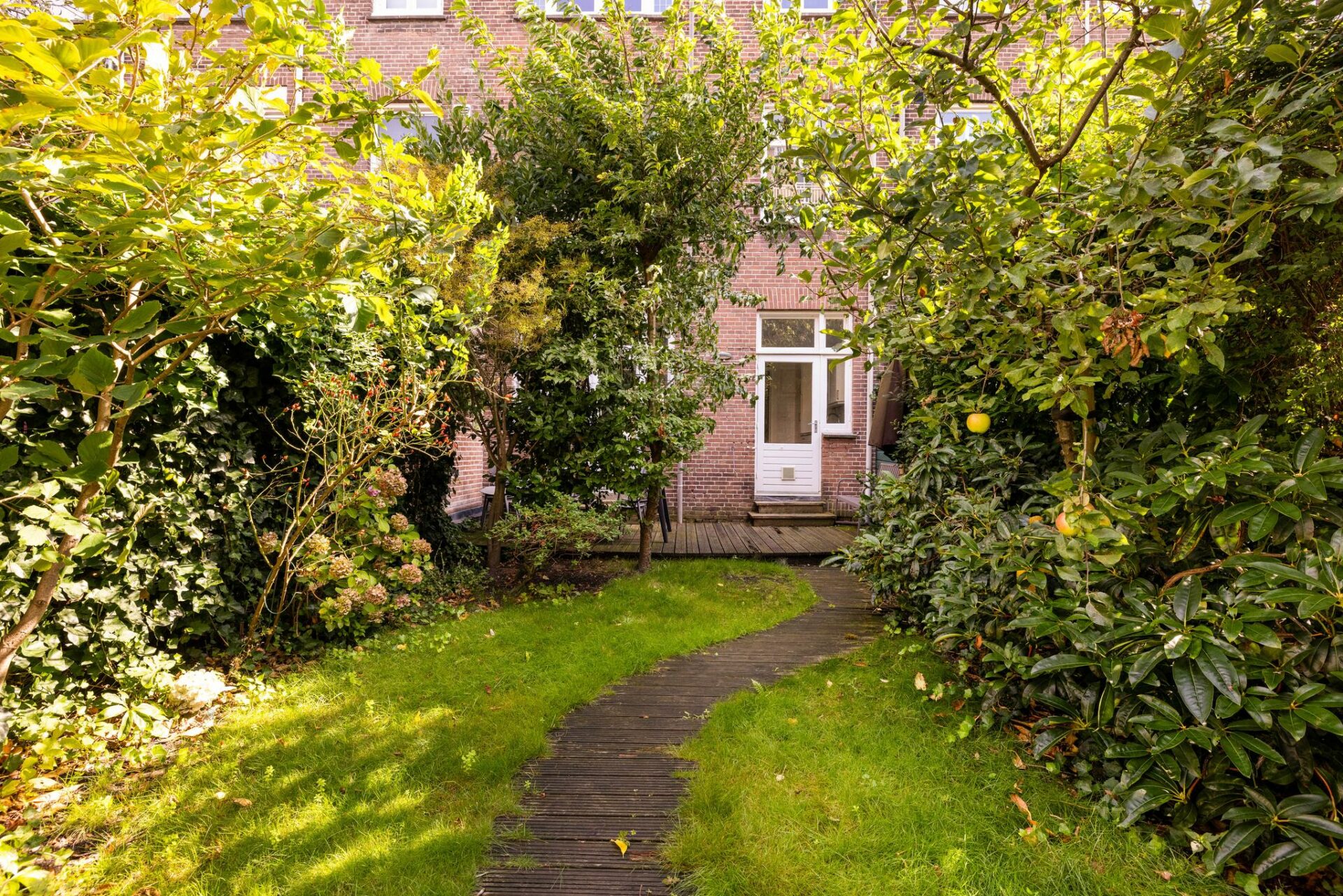 Middels je eigen voordeur betreed je de woning op de begane grond. Middels de hal bereik je alle vertrekken. De authentieke details zijn op deze etage mooi zichtbaar, en-suite deuren met handige inbouwkasten en een glas in lood raampartij met schuifdeuren naar de tuin. Als de zon hier naar binnen schijnt is het werkelijk waar een feestje! De keuken vind je aan de linkerzijde en ook middels deze ruimte bereik je de tuin. De tuin is ca. 55m2 en voorzien van een tuinhuis met verwarming, een toilet en er liggen zonnepanelen op het dak. Wij hoeven natuurlijk niet te vertellen wat er allemaal mogelijk is met zo een tuinhuis.