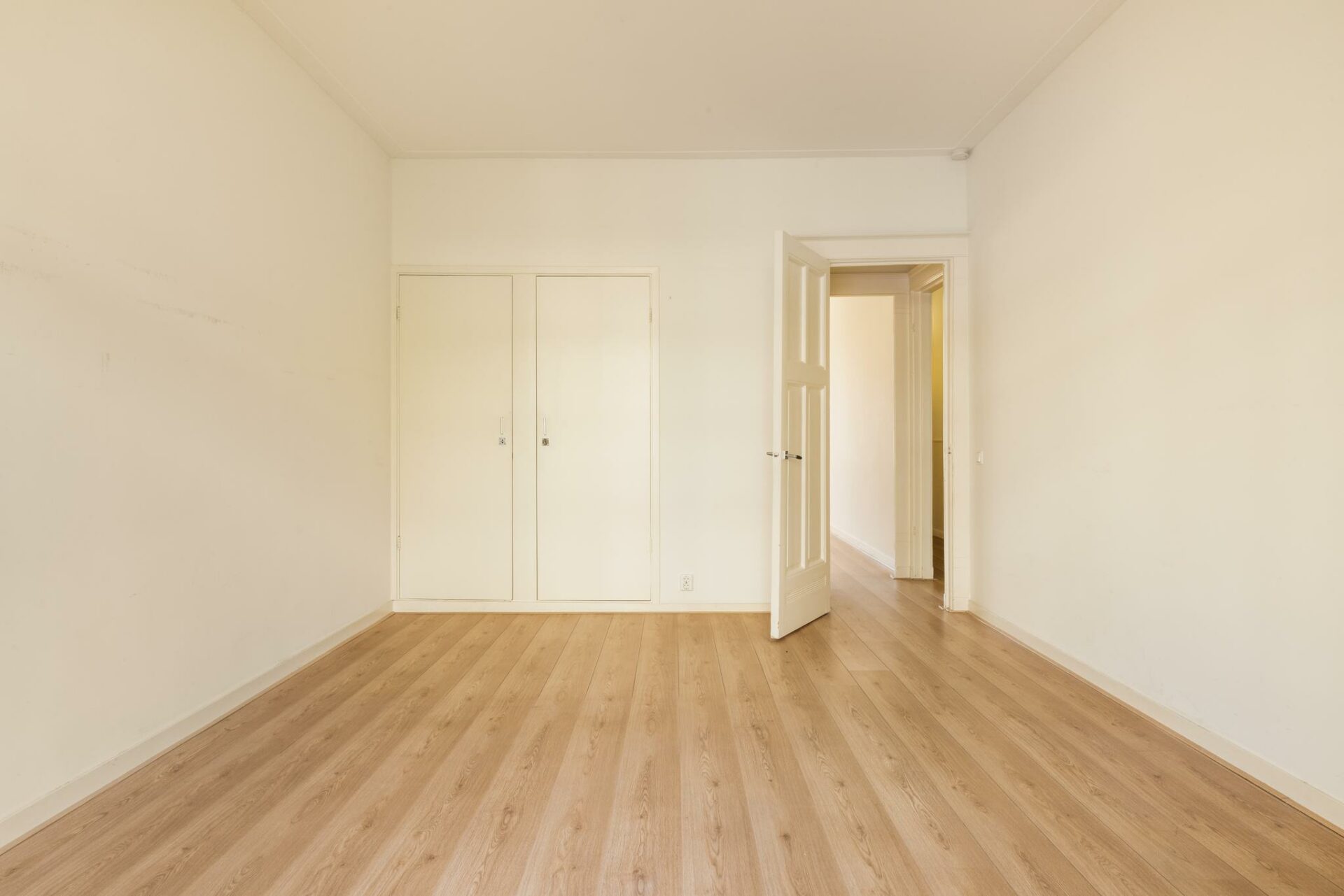 Op de eerste etage vind je de slaapkamers, 2 kamers van gigantisch formaat en 1 kamer leent zichzelf perfect als kinderkamer of werkkamer. De slaapkamer aan de achterzijde is voorzien van een balkon. Tevens vind je hier een separaat toilet en een badkamer met douche en ligbad.