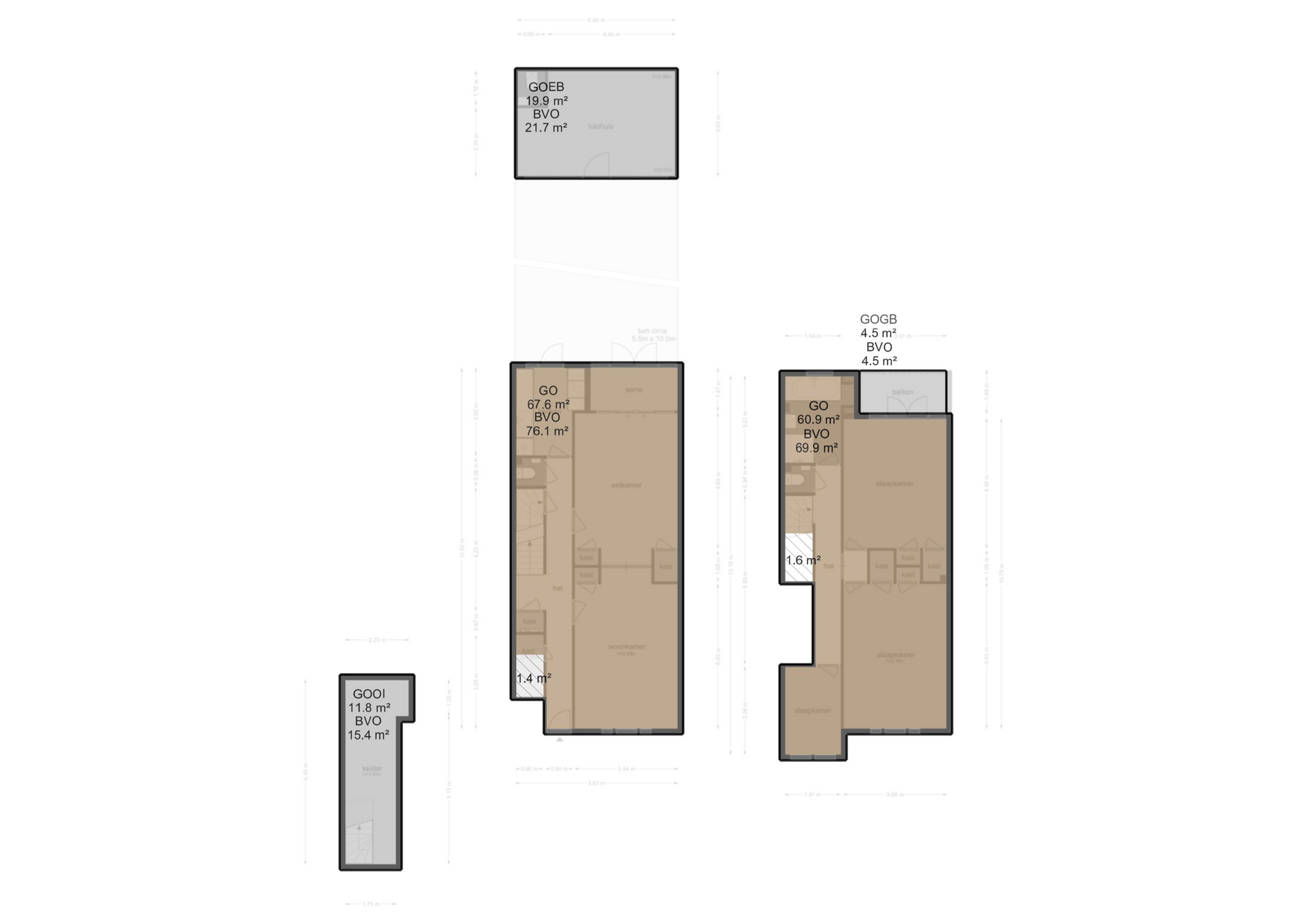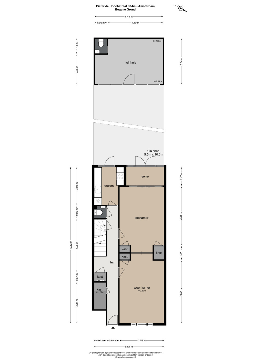 – Totale oppervlakte incl. tuinhuis 150m2 BBMI gemeten;