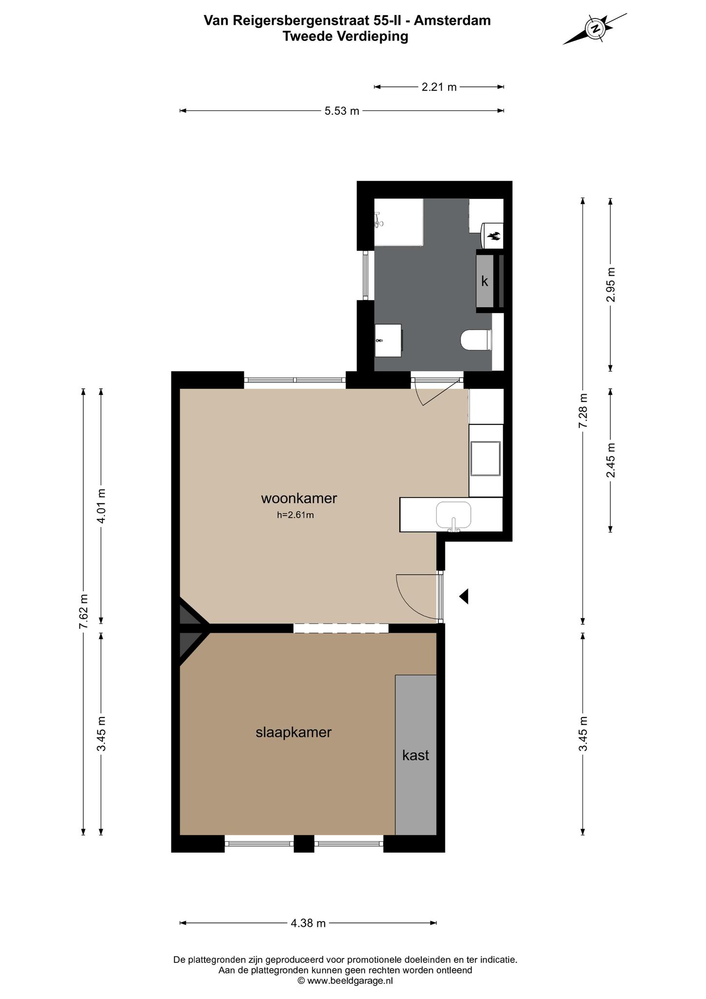 Via het nette gemeenschappelijke trappenhuis bereik je de voordeur op de tweede verdieping. Bij binnenkomst kom je terecht in de fijne woonkamer met de moderne open keuken. Door de grote ramenpartij komt er een prachtige lichtinval de woning binnen. De open keuken is voorzien van alle gemakken met divers SMEG en AEG inbouwapparatuur. Zoals een vaatwasser, inductie kookplaat, combi oven/magnetron en een koelkast met vriesvak. De slaapkamer is gelegen aan de voorzijde en is van zeer goed formaat. Er is plek voor een king size bed en er is een grote kledingkast aanwezig met daarin de meterkast. Momenteel is er geen muur tussen de woonkamer en de slaapkamer maar dit is gemakkelijk te realiseren (zie alternatieve plattegrond). De badkamer is gelegen aan de achterzijde en beschikt over een marmer look vloer, een inloopdouche, wastafelmeubel, toilet, een ingebouwde kast en een wasmachineaansluiting.