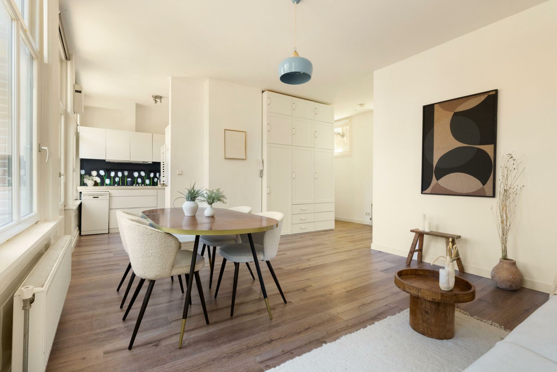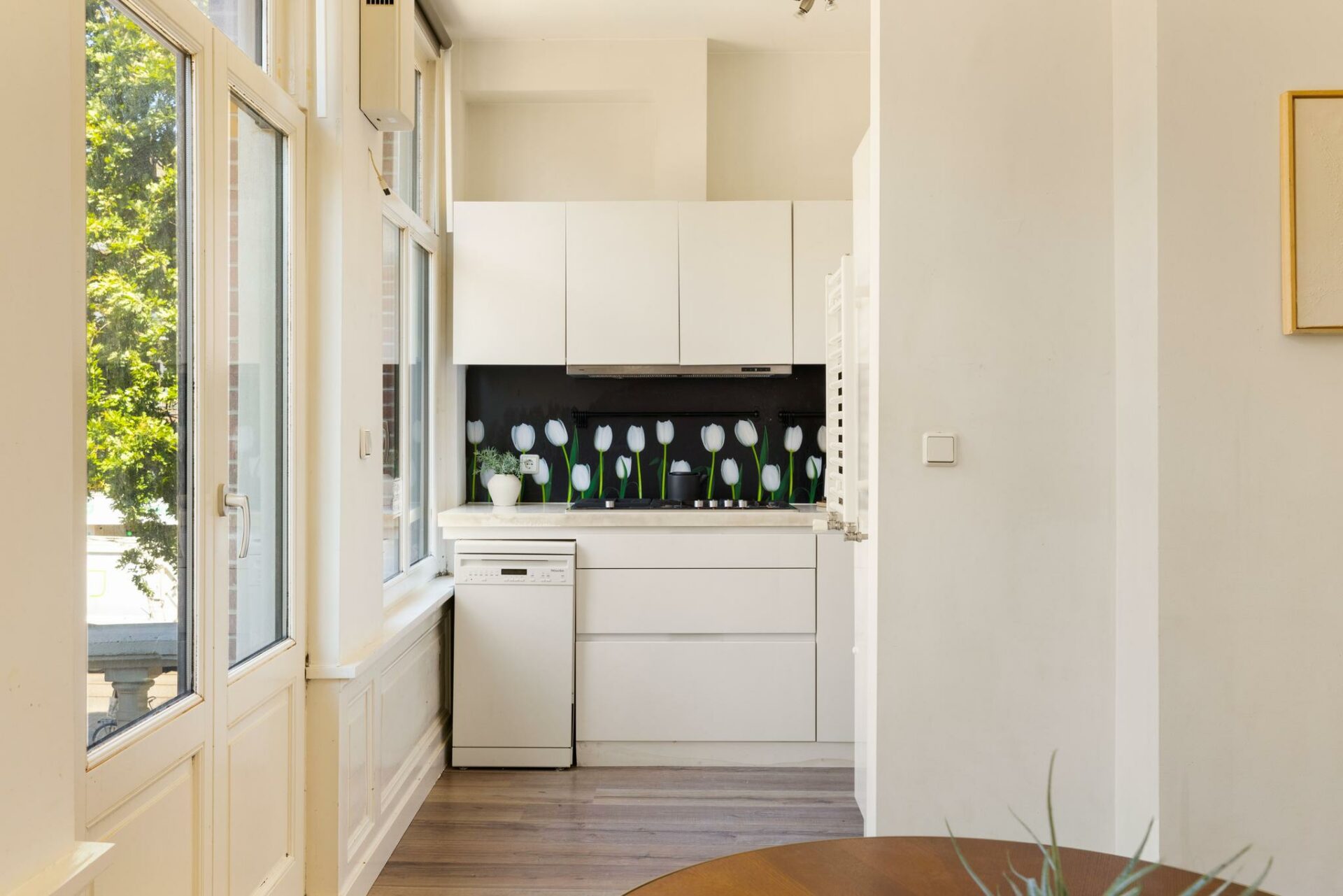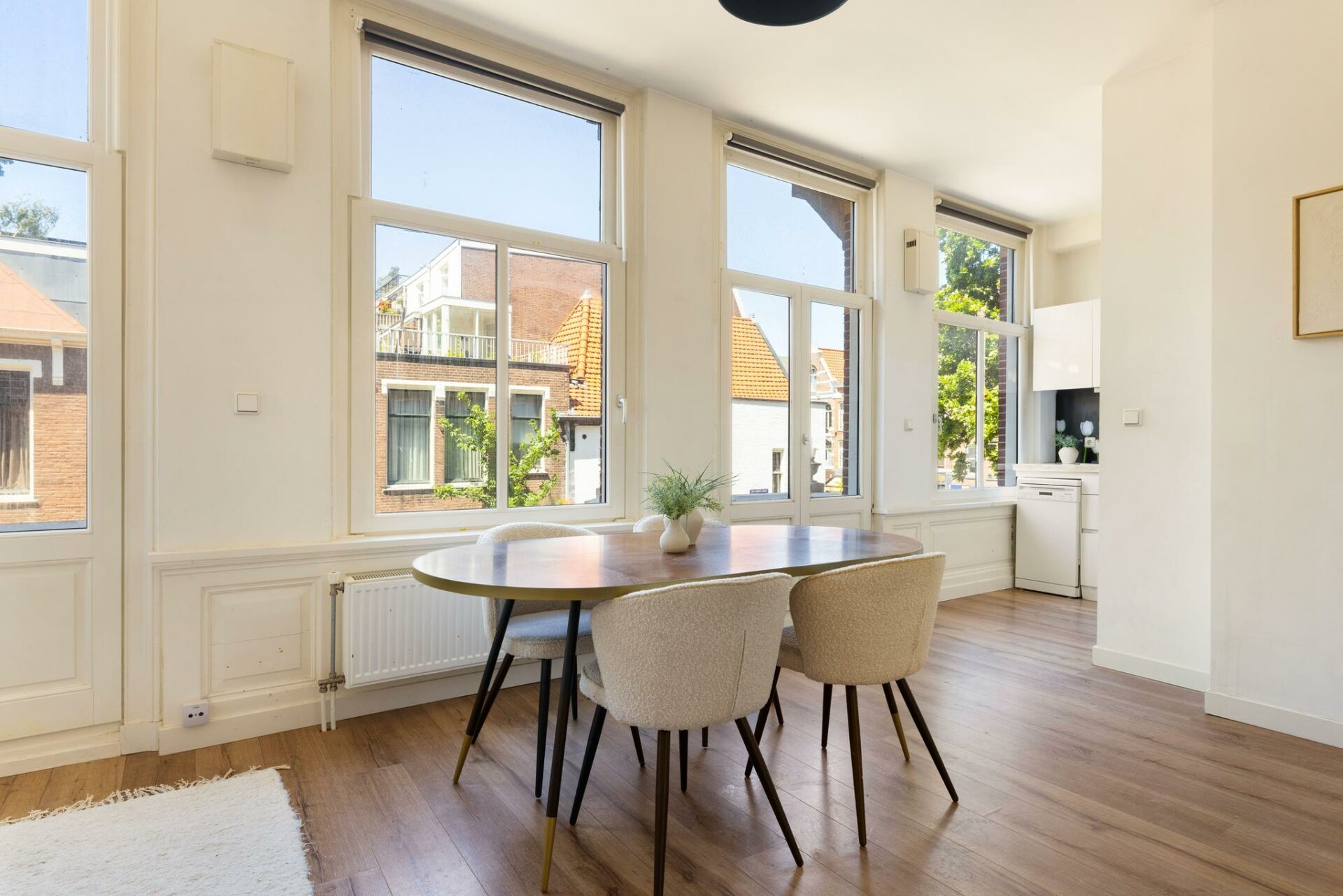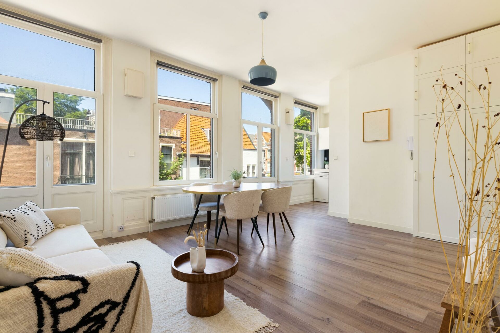 Middels het gezamenlijke trappenhuis bereikt u de woning op de eerste etage. Bij het betreden van de woning wordt u meteen begroet door een overvloed aan natuurlijk licht, dat de ruimte doordringt en bijdraagt aan het ruimtelijke gevoel. De ruime woonkamer vormt het hart van de woning en biedt voldoende ruimte voor een gezellige zit- en eethoek. De half open keuken grenst aan de woonkamer is voorzien van een gasfornuis, oven, vaatwasser en koelkast. Via de openslaande deuren in de woonkamer zijn ook beide balkons aan de voorzijde te bereiken. Beide slaapkamers zijn vanuit de woonkamer te bereiken, evenals de badkamer die is voorzien van een ligbad met douche, wastafel en aansluiting voor de wasmachine. Het toilet zit separaat. In de woonkamer vindt u tevens een praktische ingebouwde kastenwand zodat u voldoende plek heeft om uw spullen op te bergen.