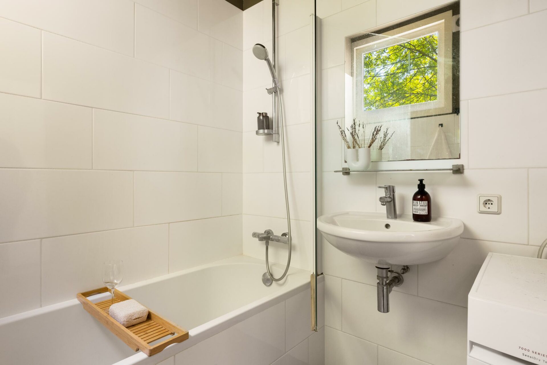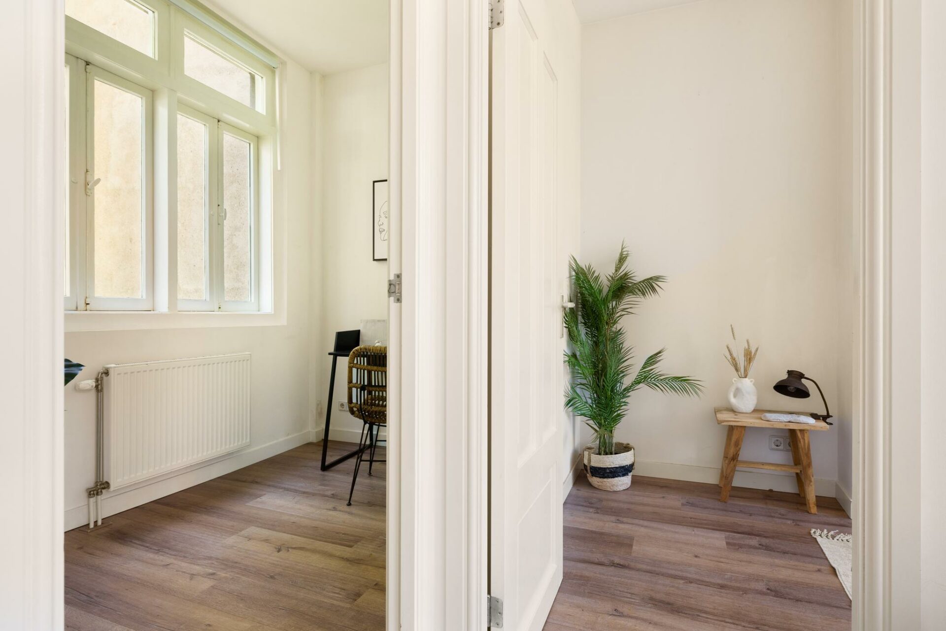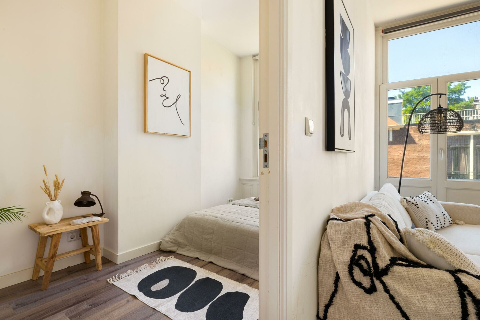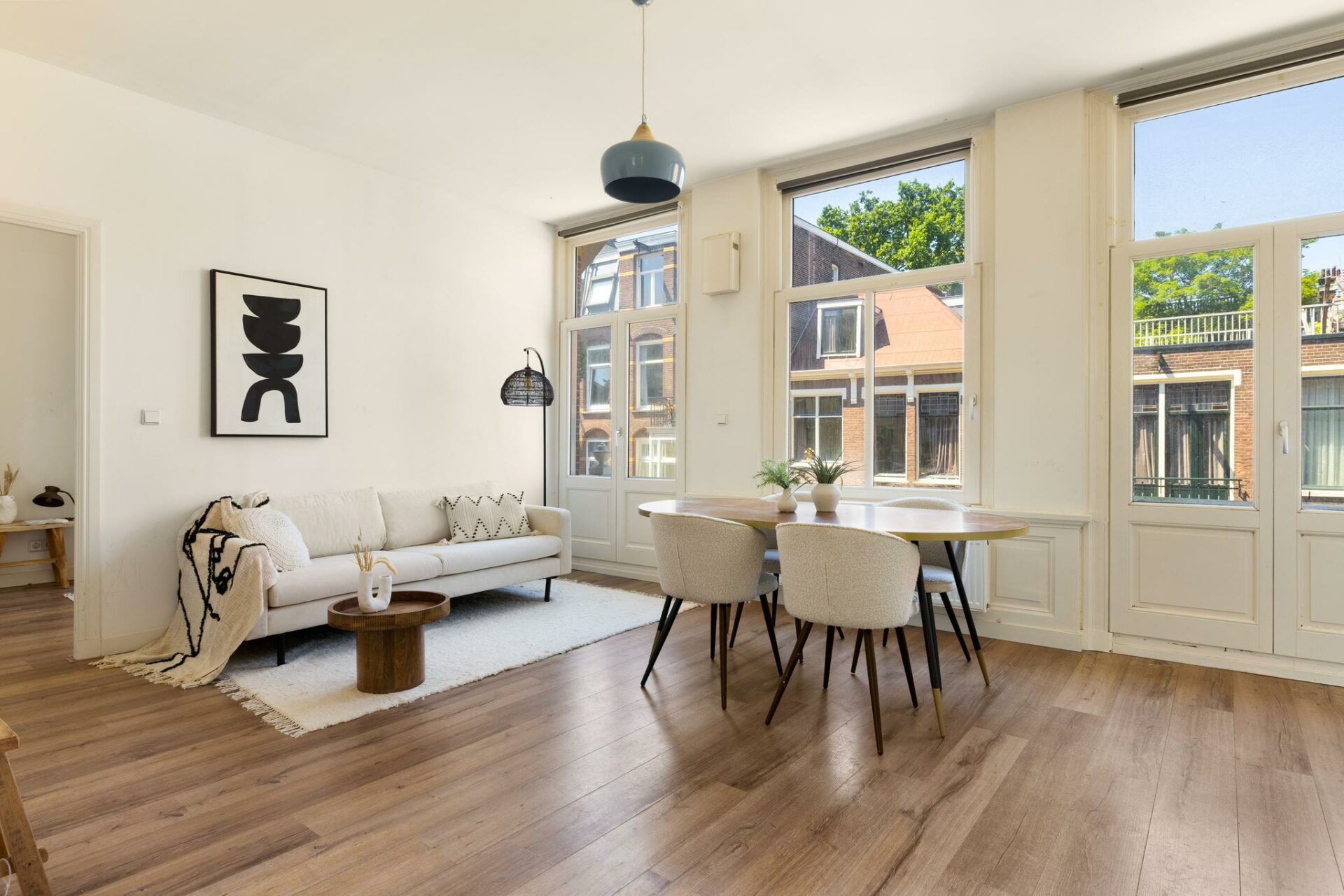 Middels het gezamenlijke trappenhuis bereikt u de woning op de eerste etage. Bij het betreden van de woning wordt u meteen begroet door een overvloed aan natuurlijk licht, dat de ruimte doordringt en bijdraagt aan het ruimtelijke gevoel. De ruime woonkamer vormt het hart van de woning en biedt voldoende ruimte voor een gezellige zit- en eethoek. De half open keuken grenst aan de woonkamer is voorzien van een gasfornuis, oven, vaatwasser en koelkast. Via de openslaande deuren in de woonkamer zijn ook beide balkons aan de voorzijde te bereiken. Beide slaapkamers zijn vanuit de woonkamer te bereiken, evenals de badkamer die is voorzien van een ligbad met douche, wastafel en aansluiting voor de wasmachine. Het toilet zit separaat. In de woonkamer vindt u tevens een praktische ingebouwde kastenwand zodat u voldoende plek heeft om uw spullen op te bergen.